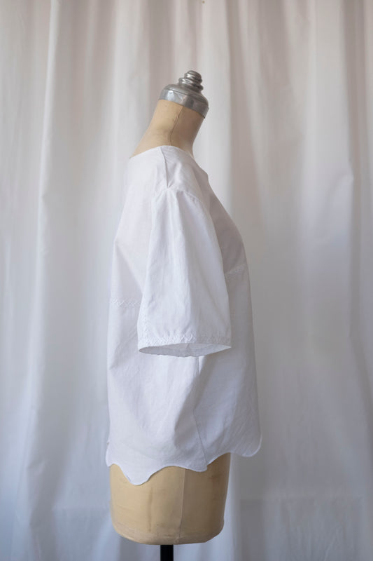 Vendela ~ Reworked Embroidered Scallop Tee- M/L