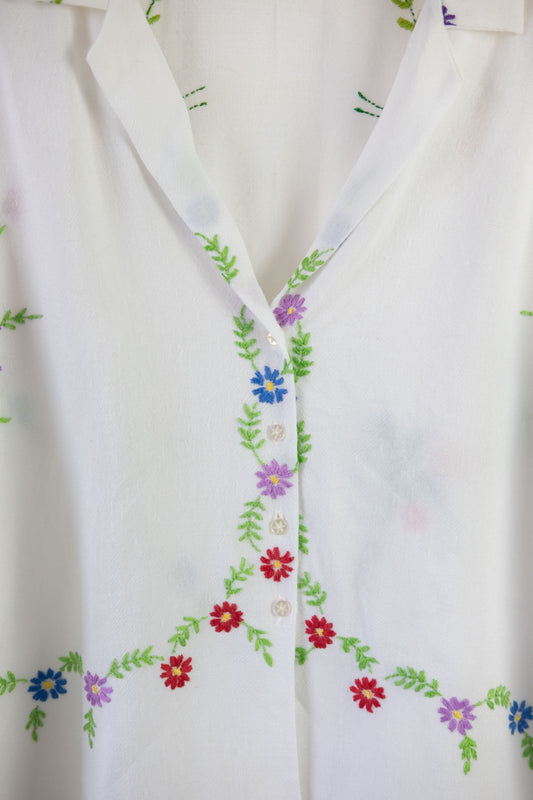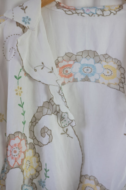 Camille ~ Reworked Vintage Linen Embroidered Shirt - One Size