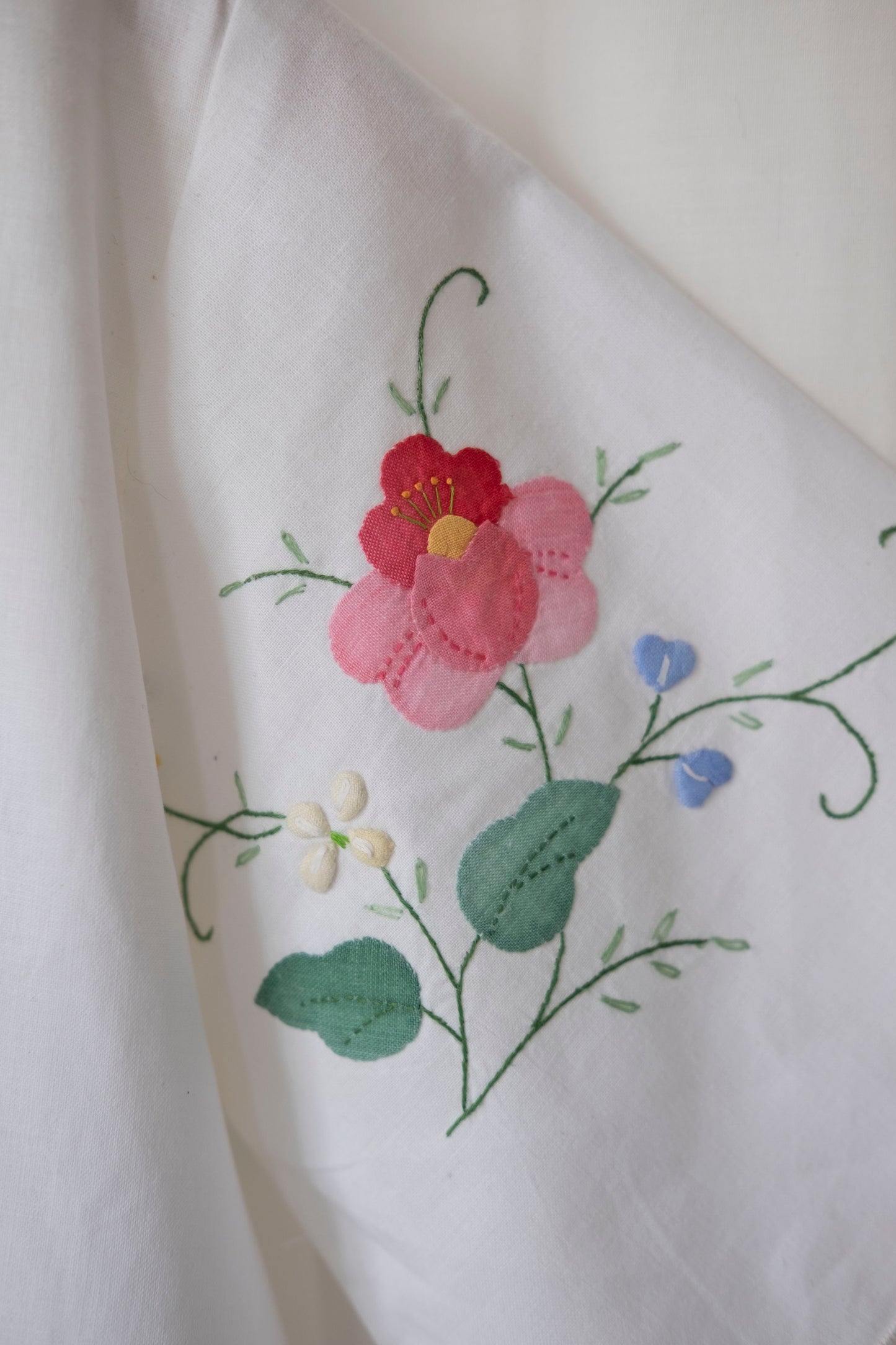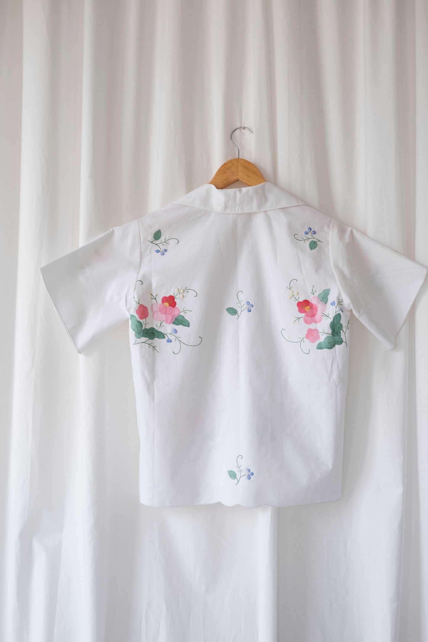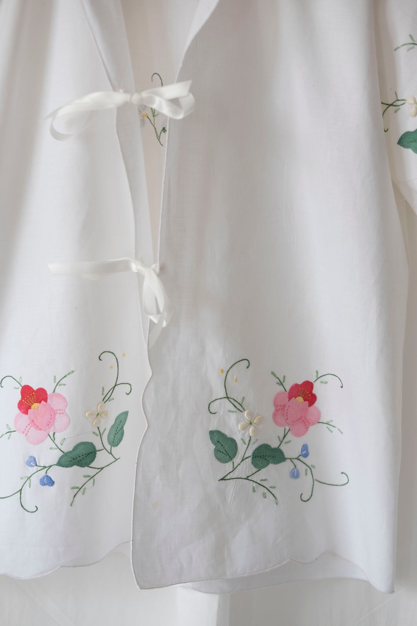Camellia ~ Reworked Embroidered Tie Blouse ~ M
