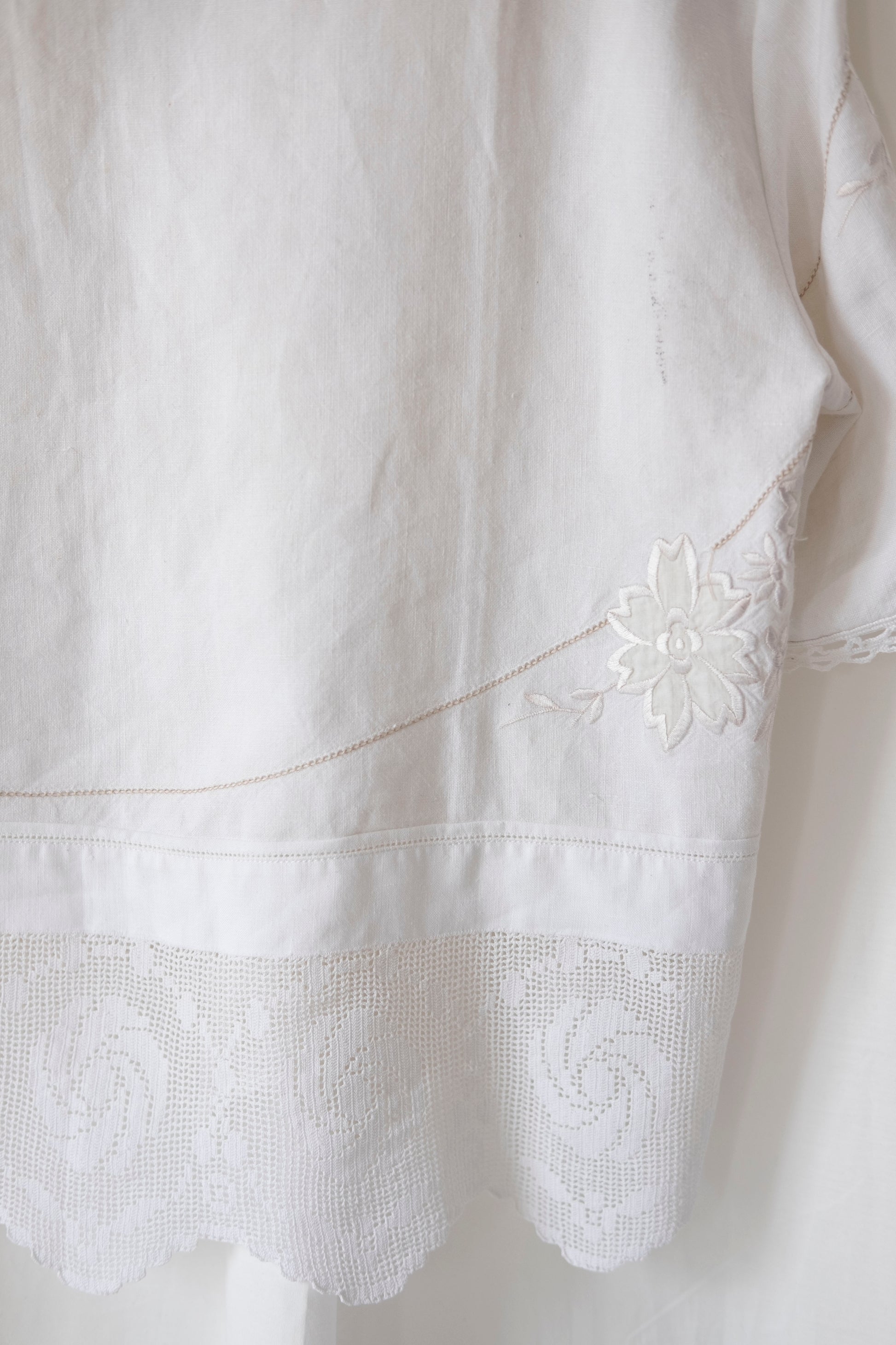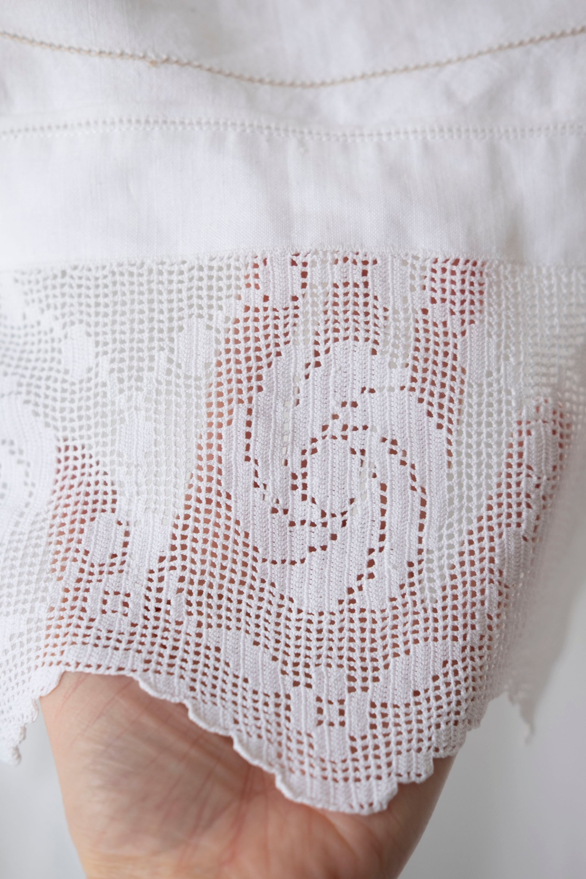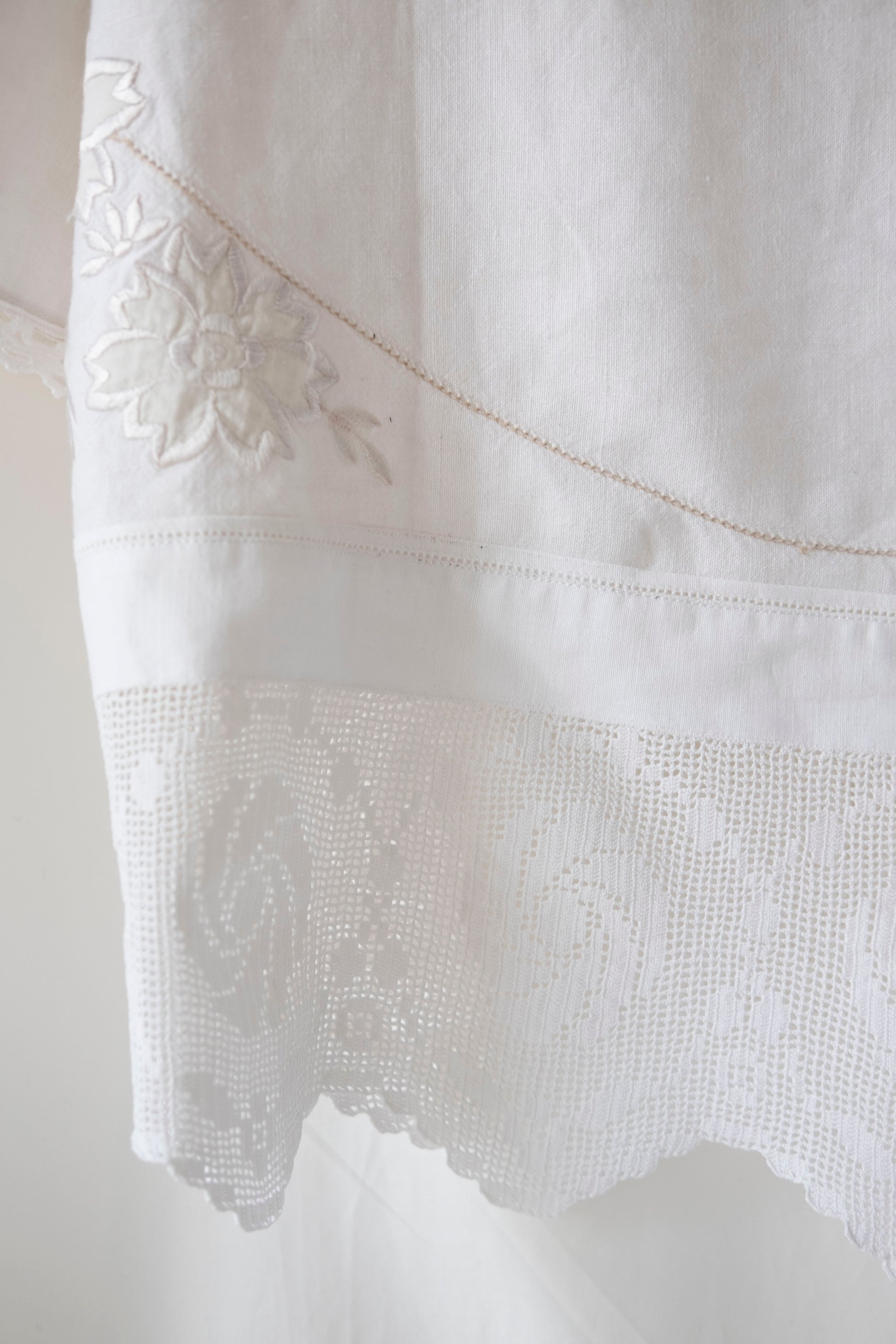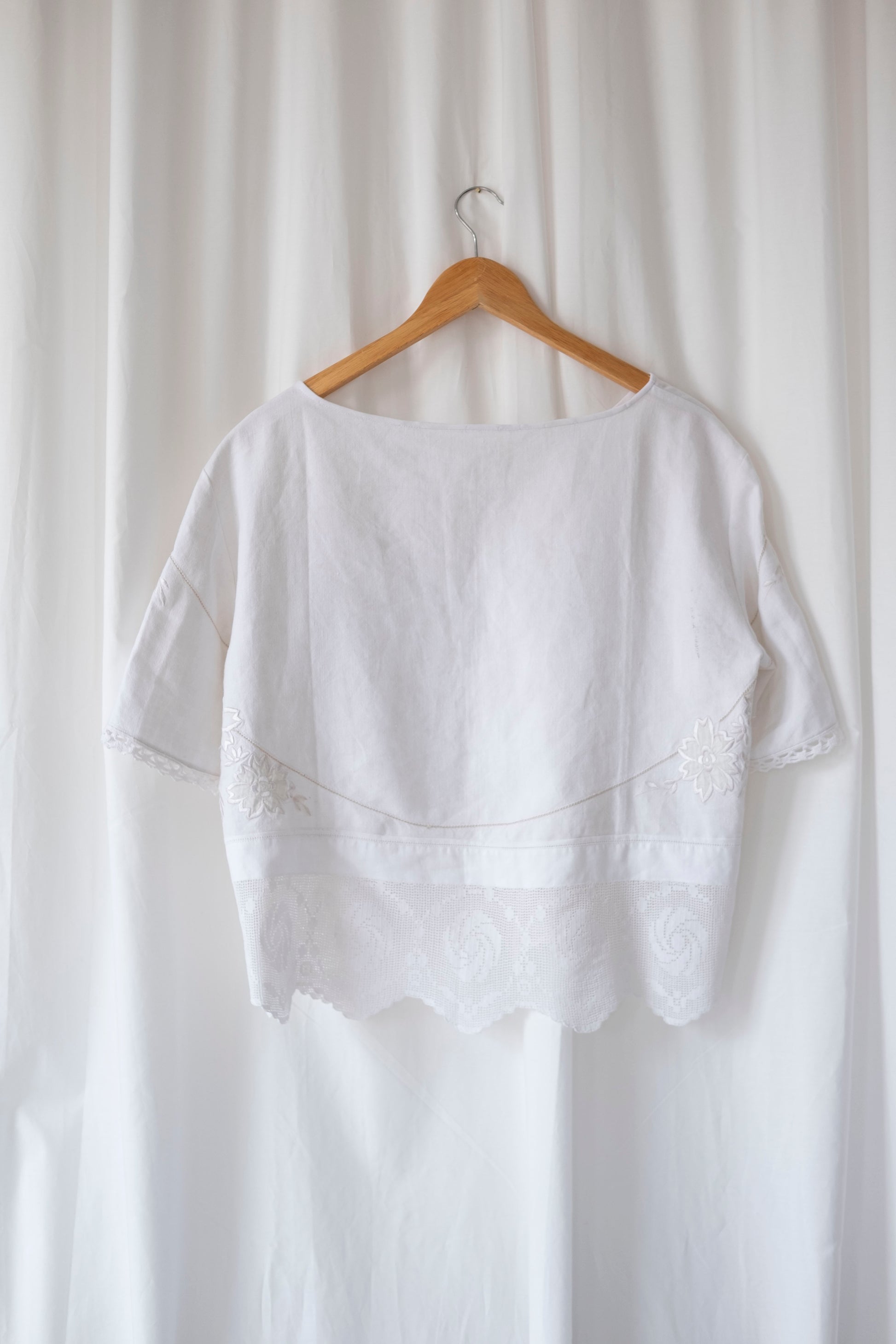Primrose ~ Reworked Linen & Crochet Tee ~ M/L