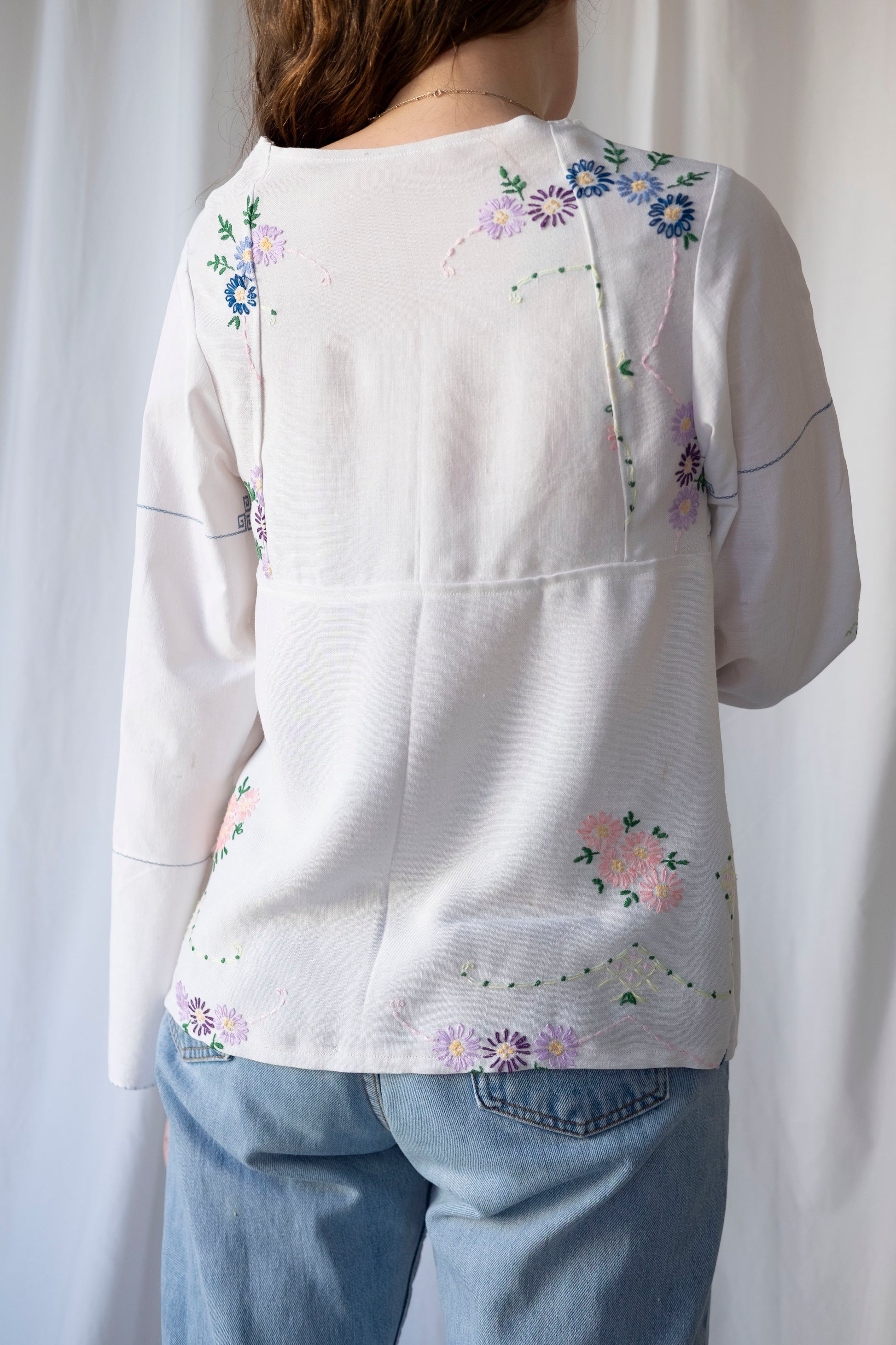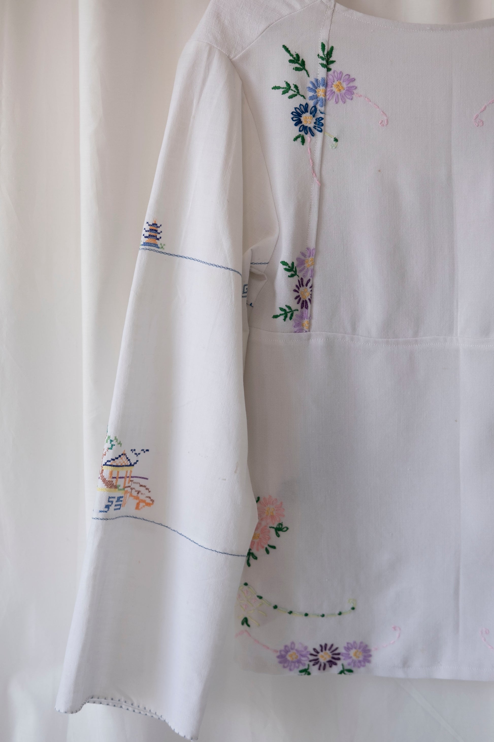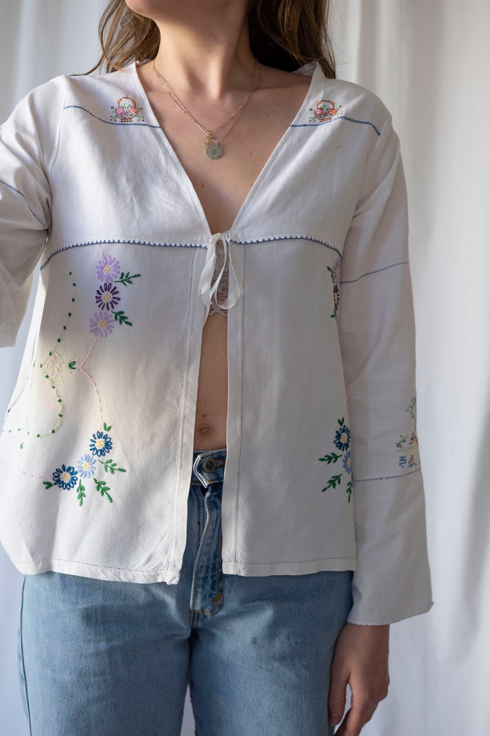 Hyacinth ~ Reworked Embroidered Tie Blouse ~ S