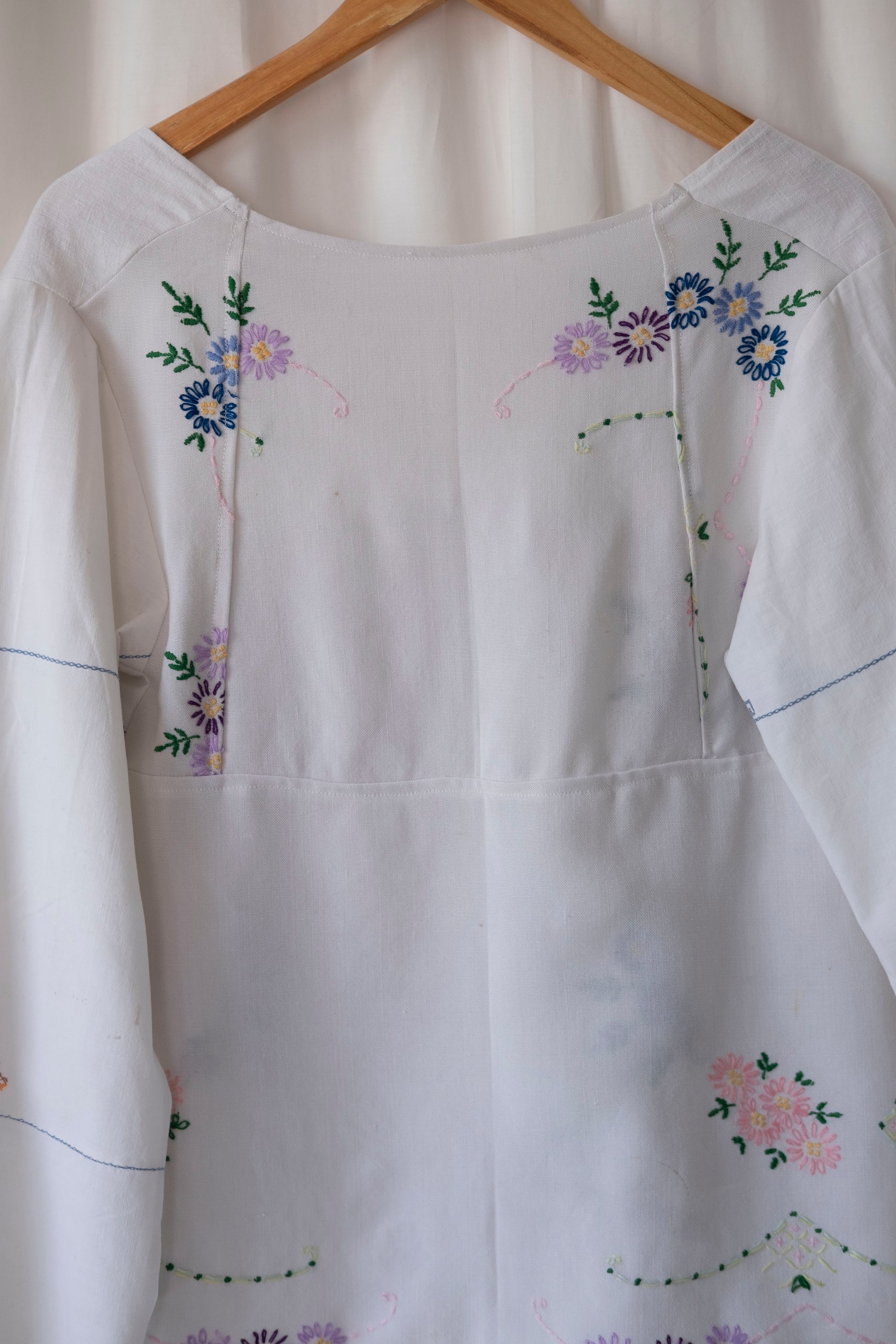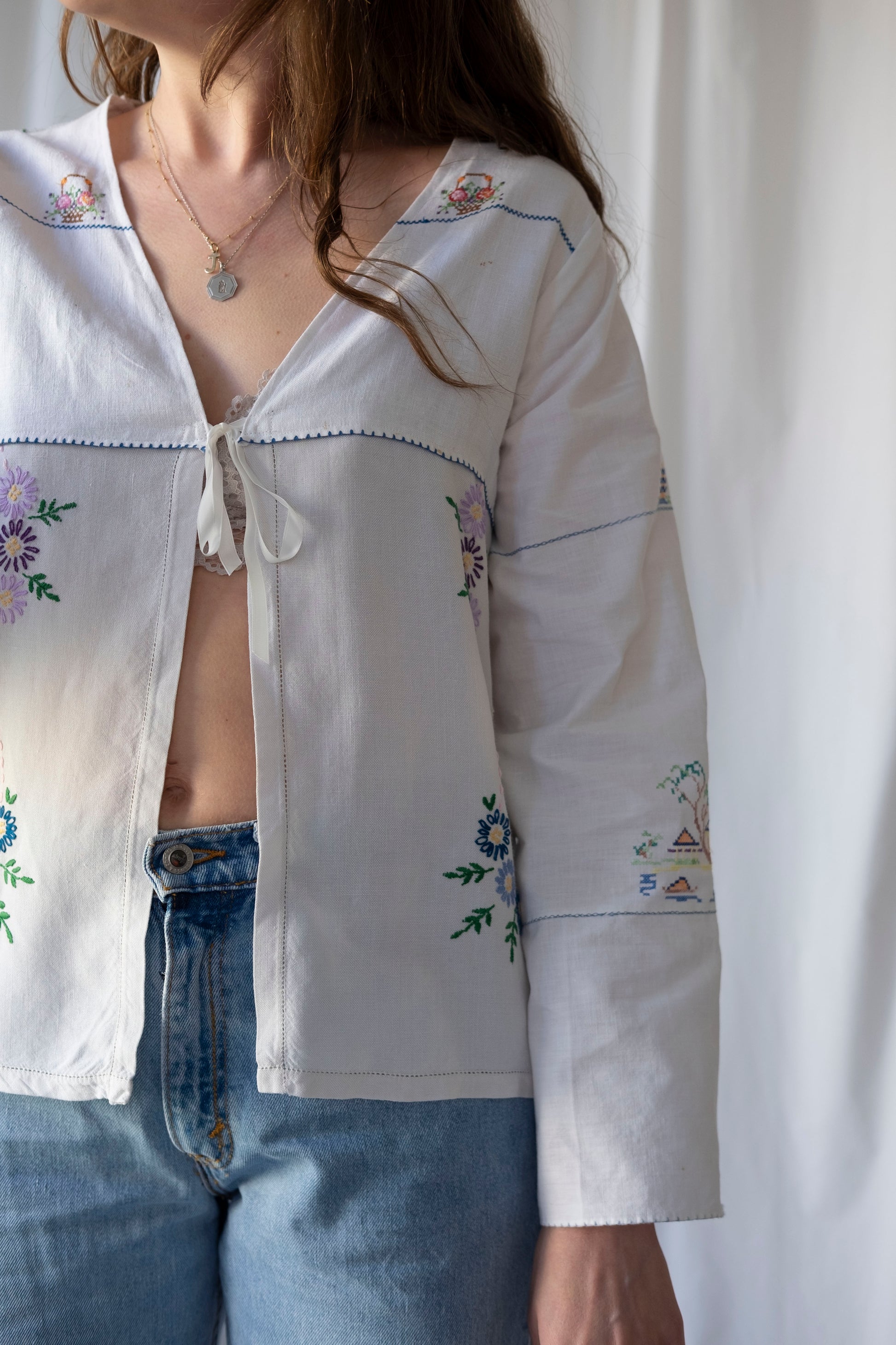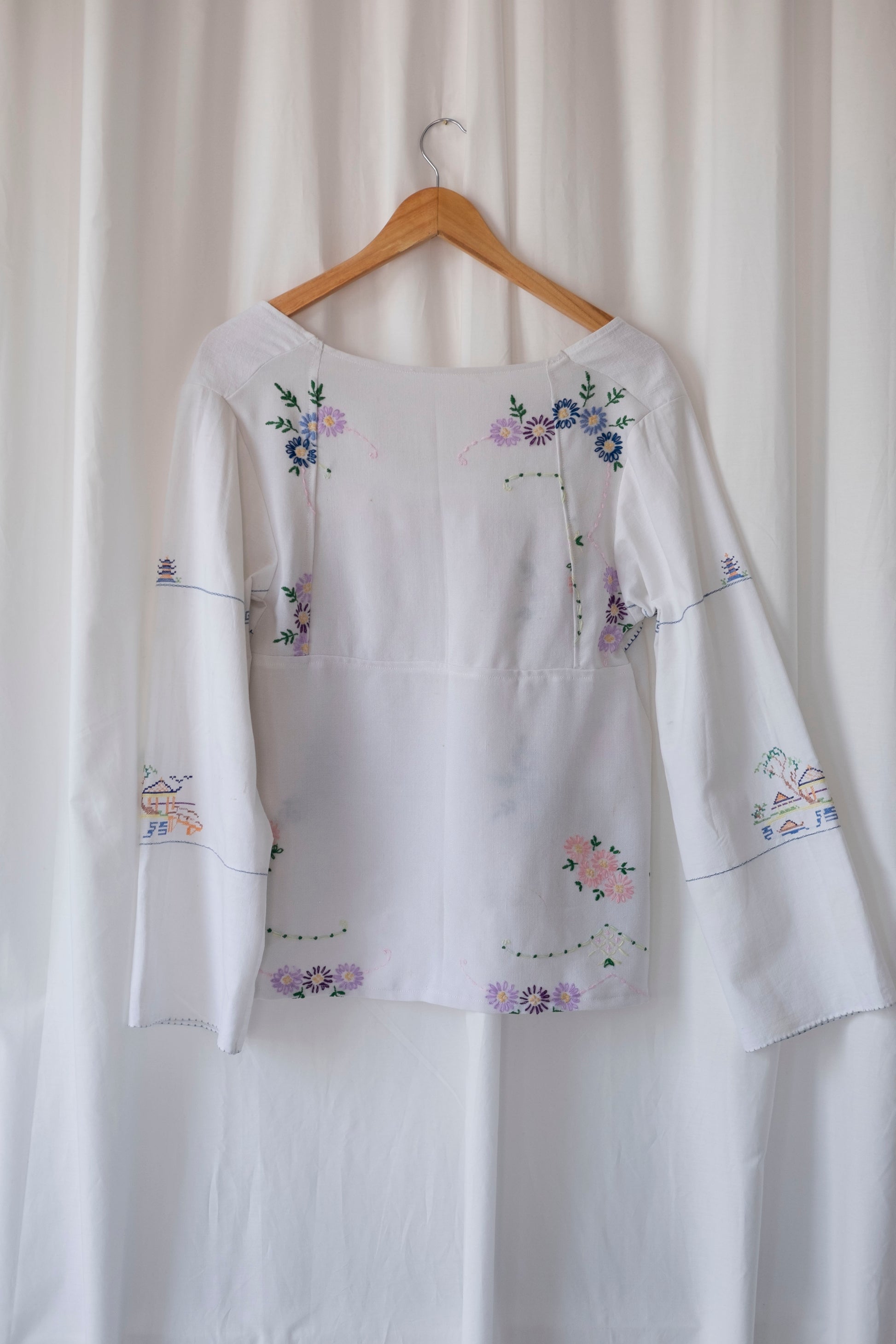 Hyacinth ~ Reworked Embroidered Tie Blouse ~ S