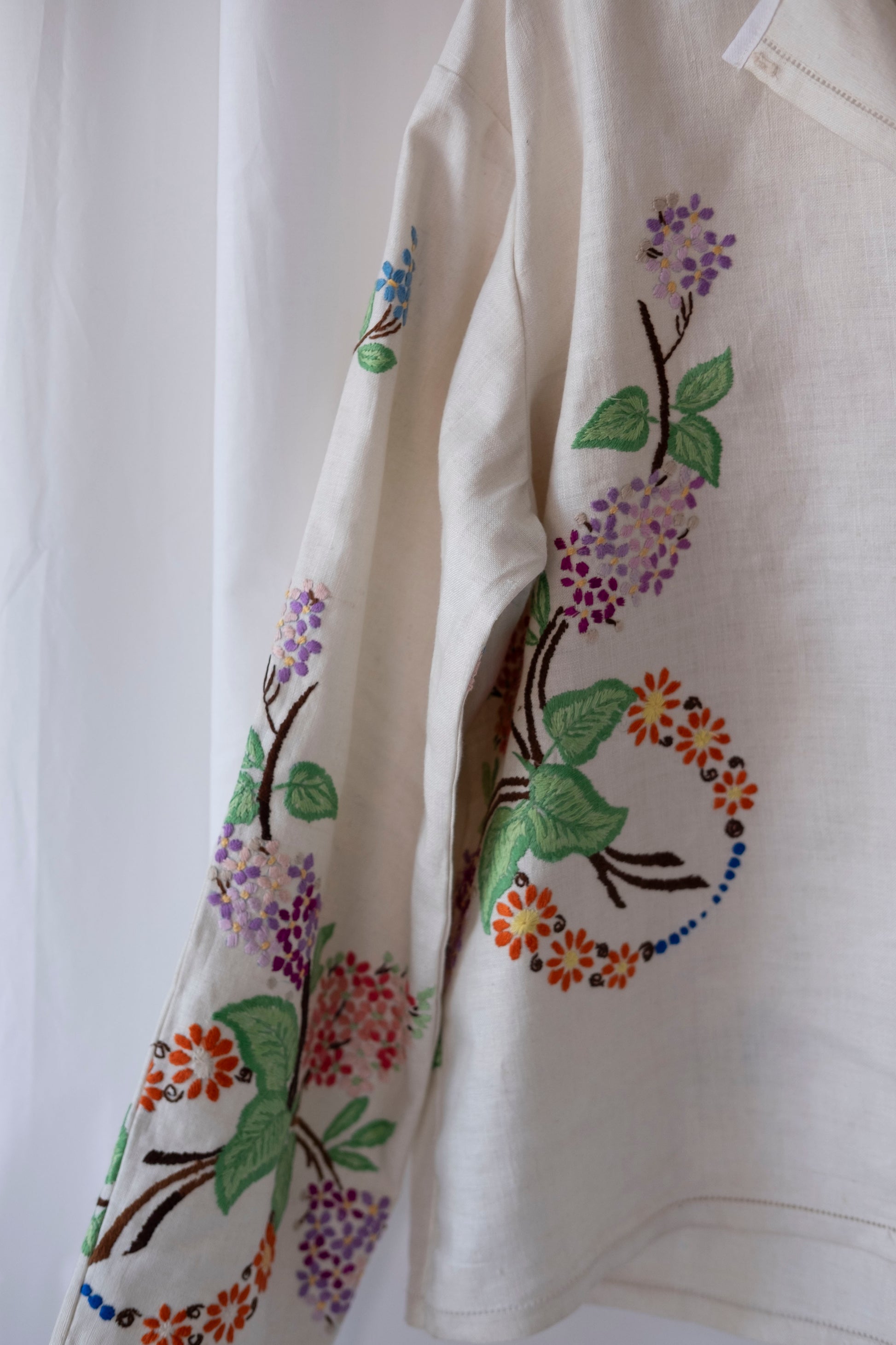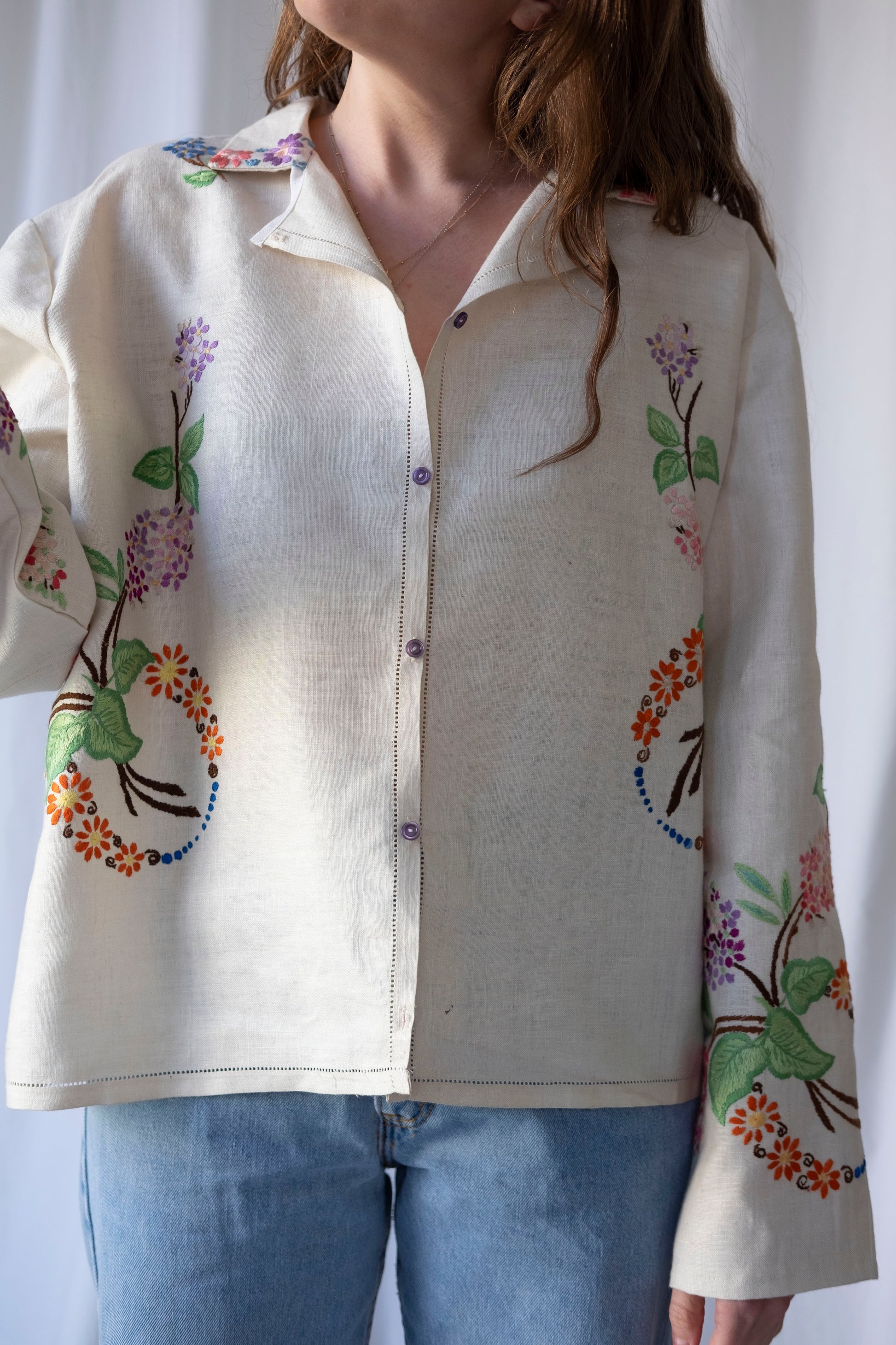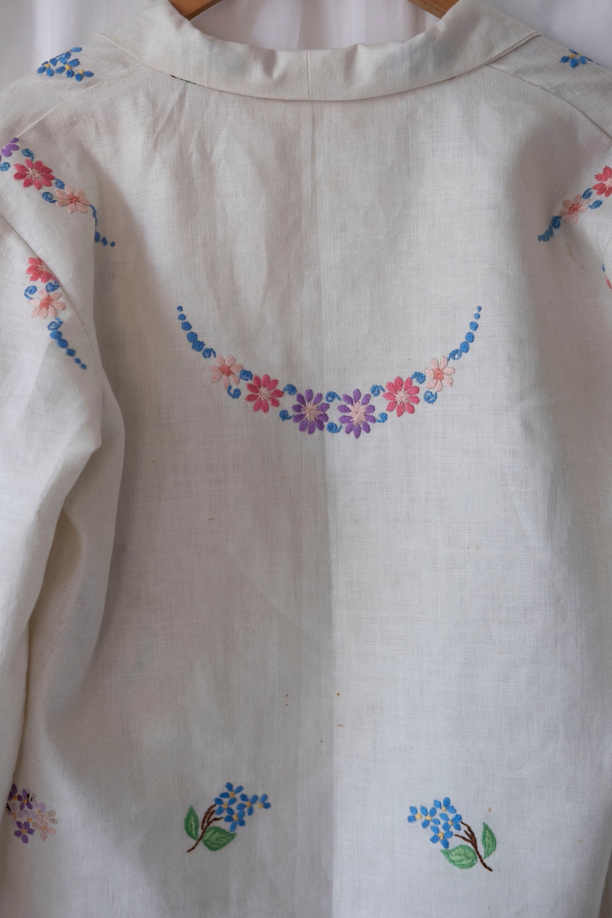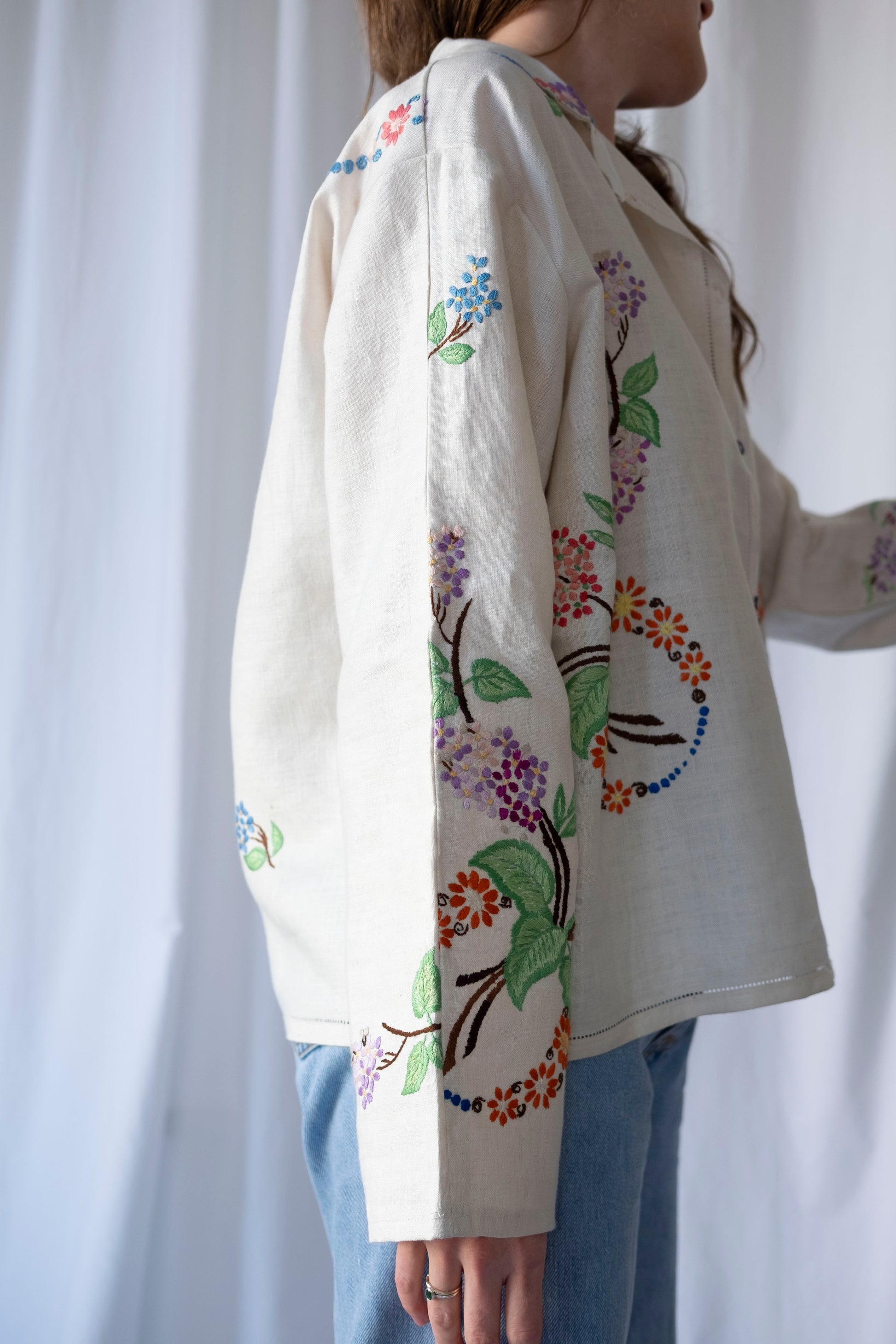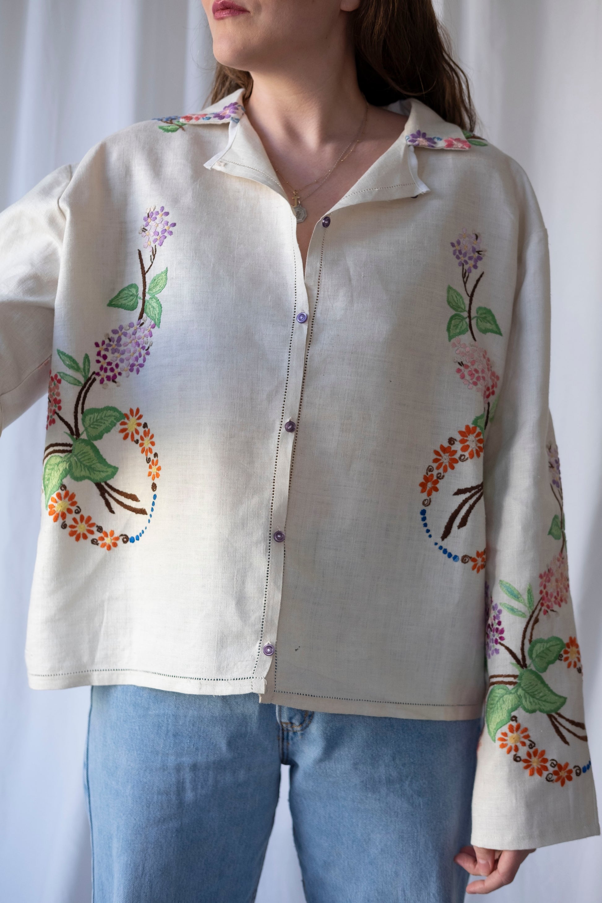Lilac ~ Reworked Heavy Linen Embroidered Overshirt ~ L/XL