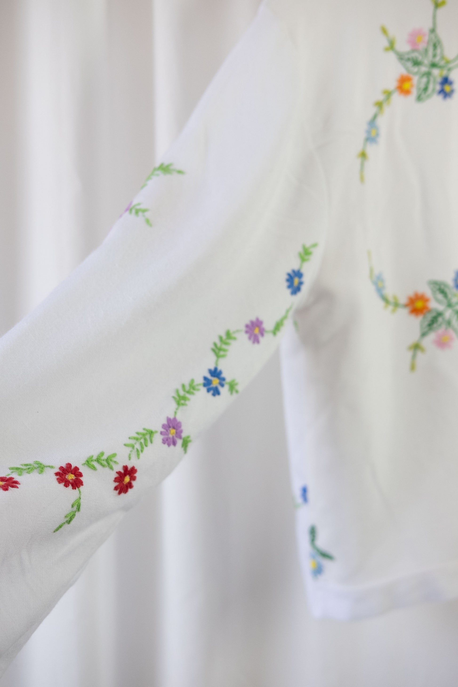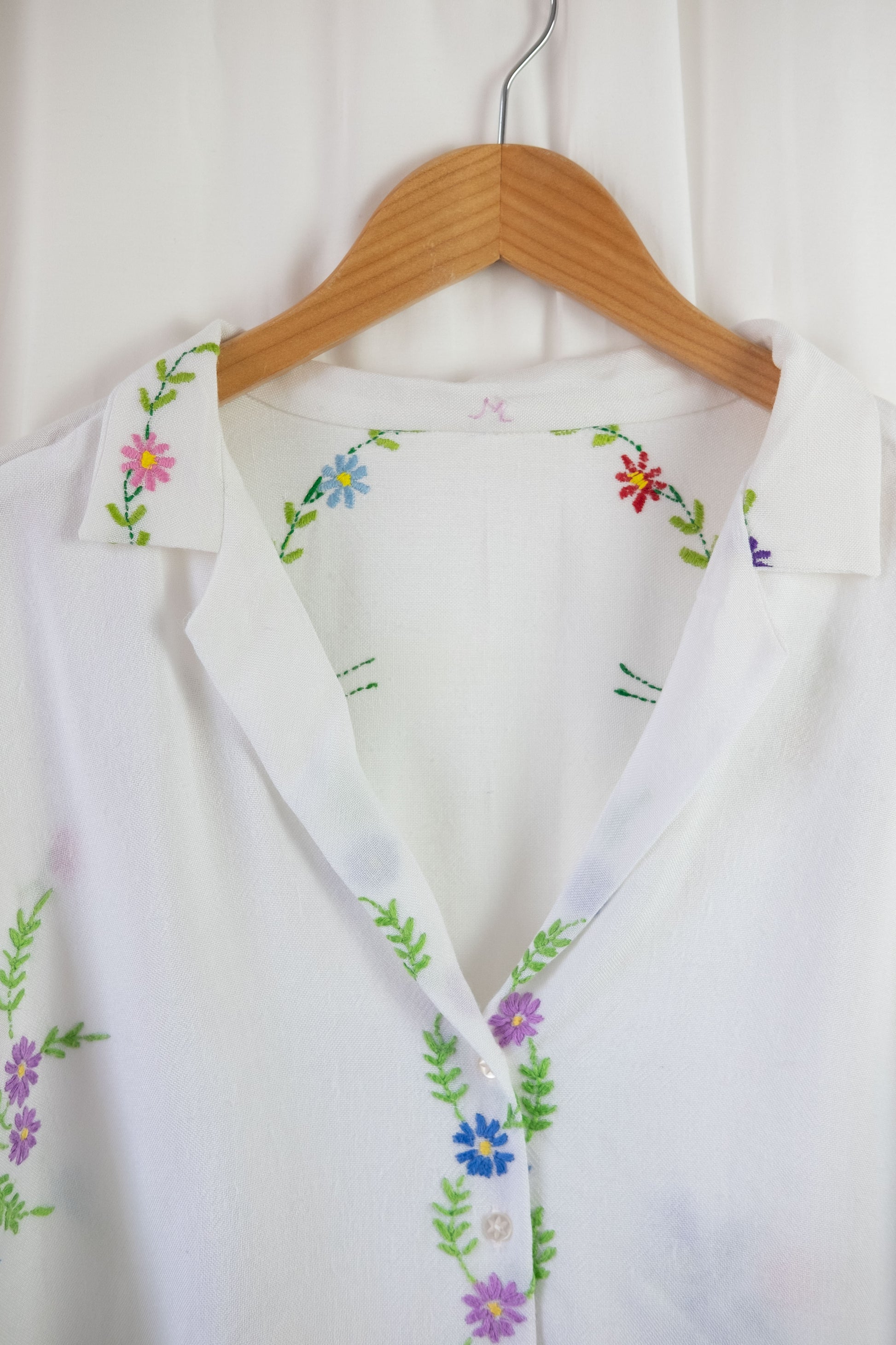 Clematis ~ Reworked Vintage Linen Embroidered Shirt - L/XL