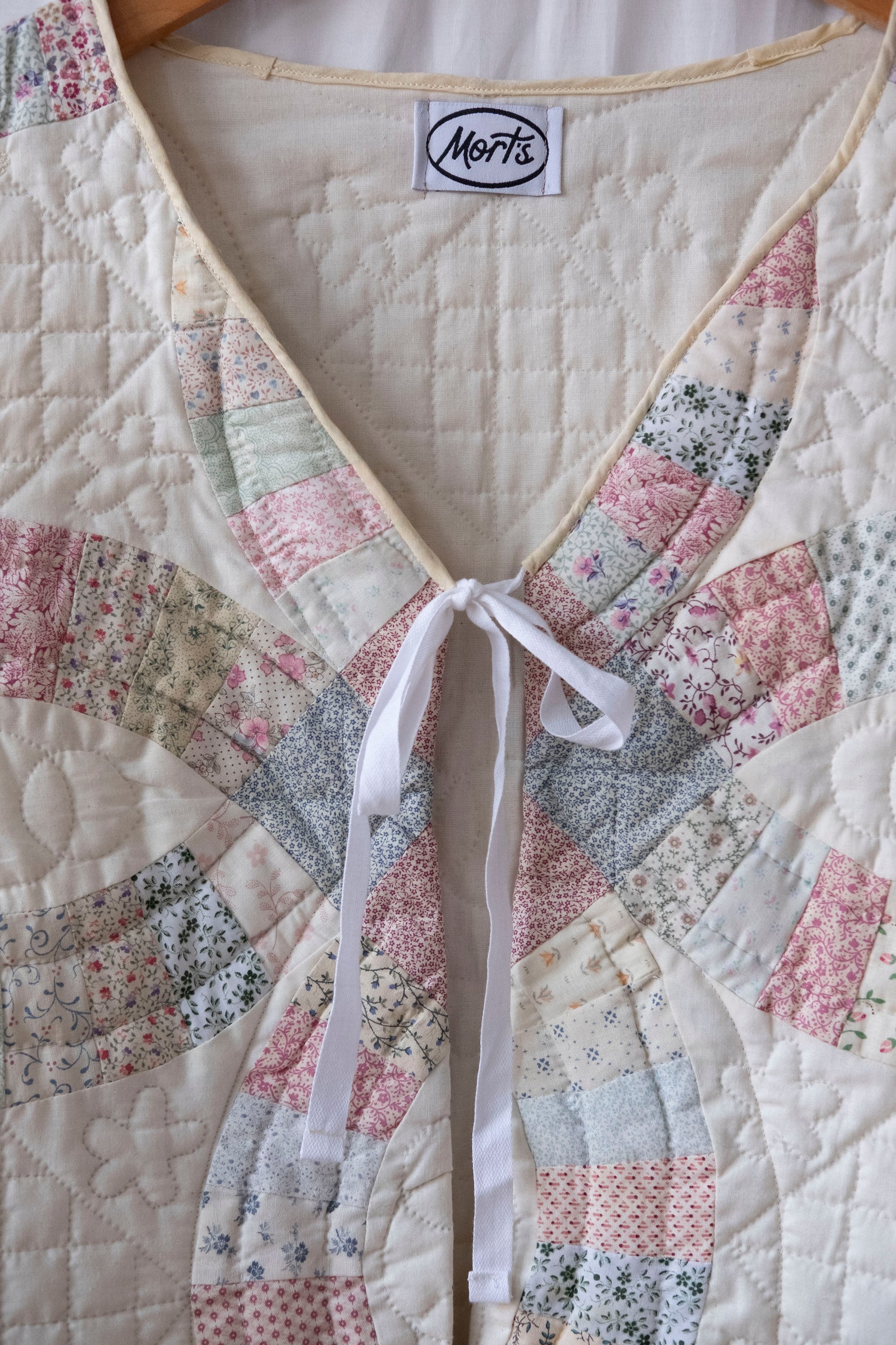 Handmade using a vintage patchwork quilt.