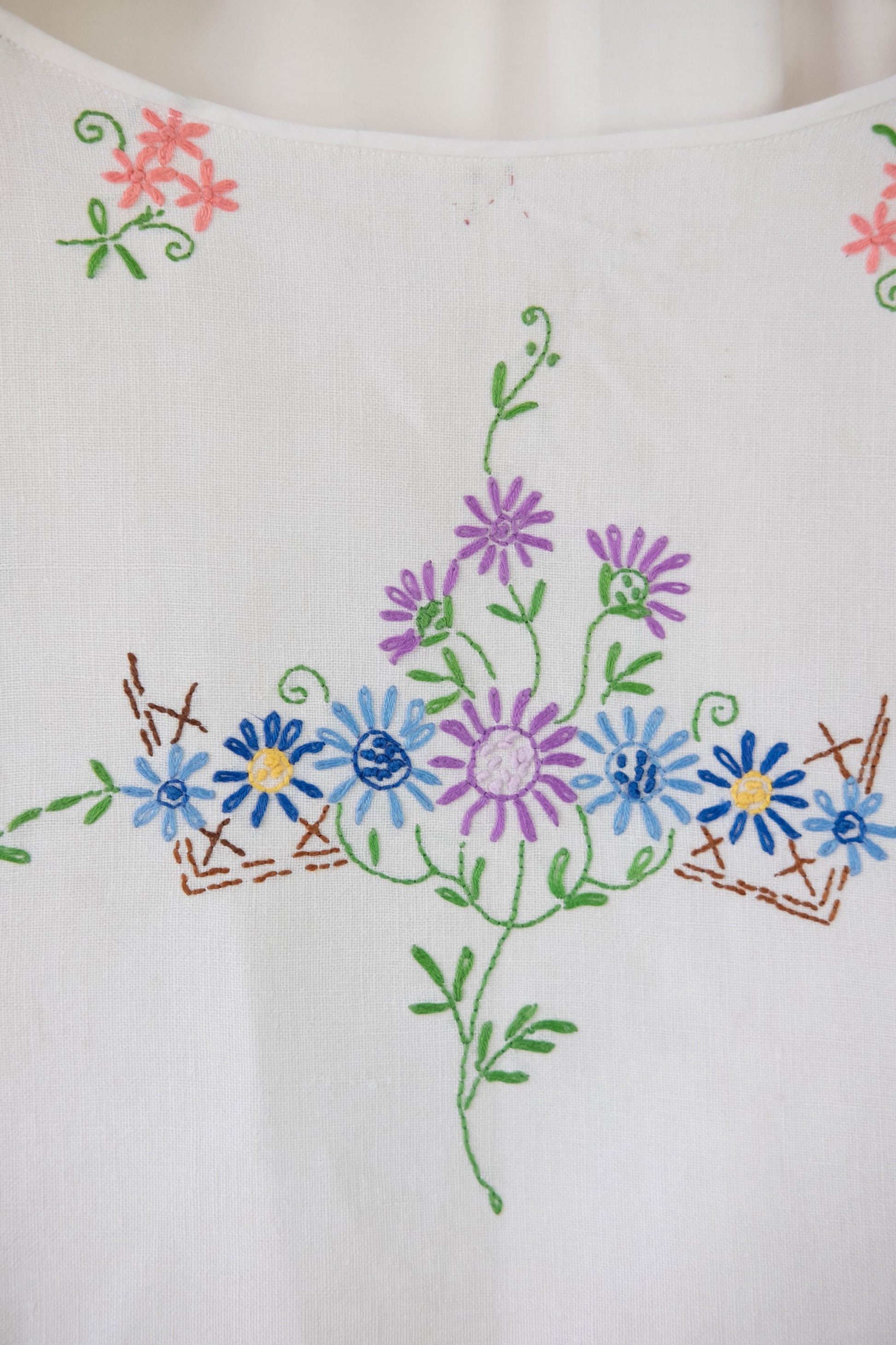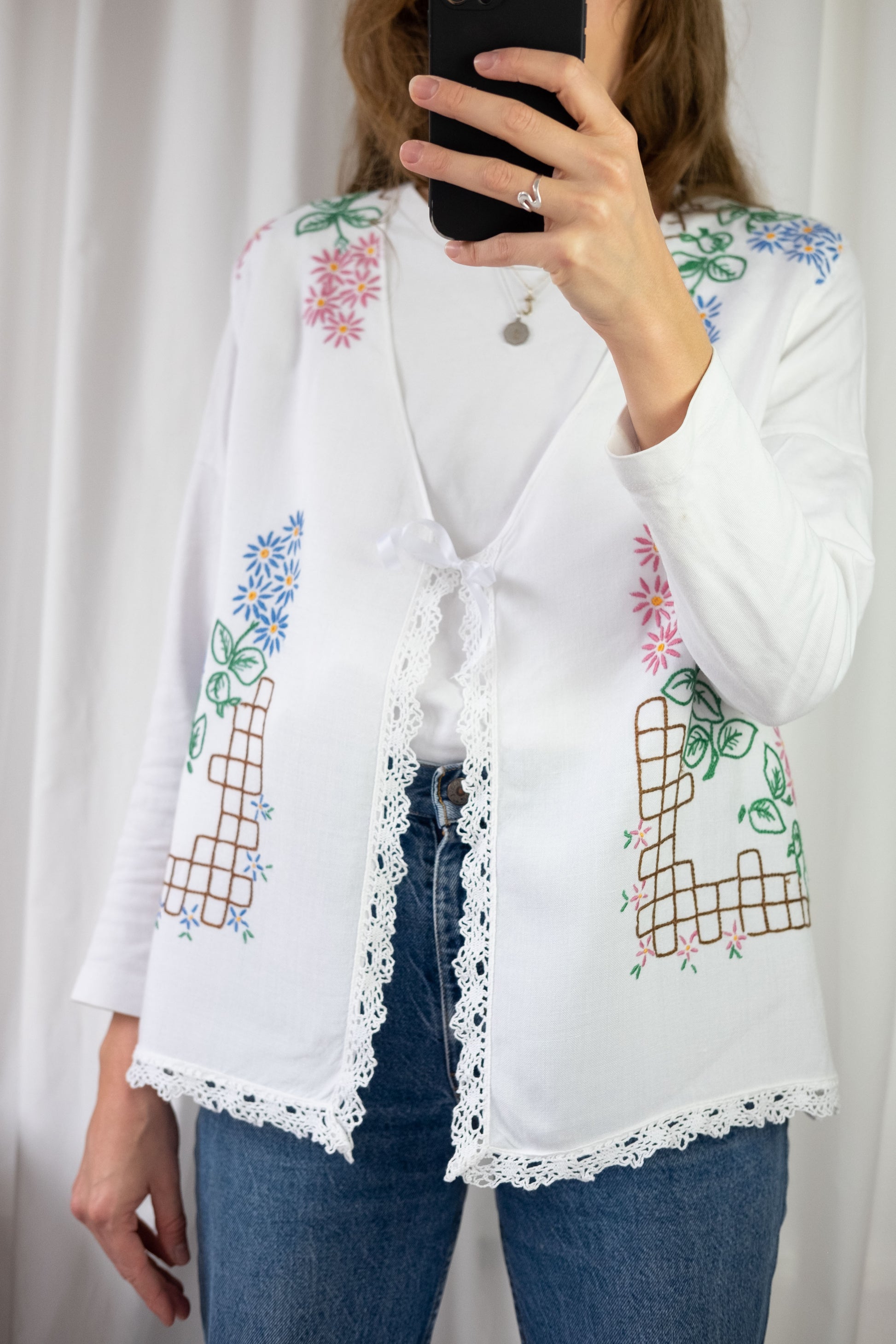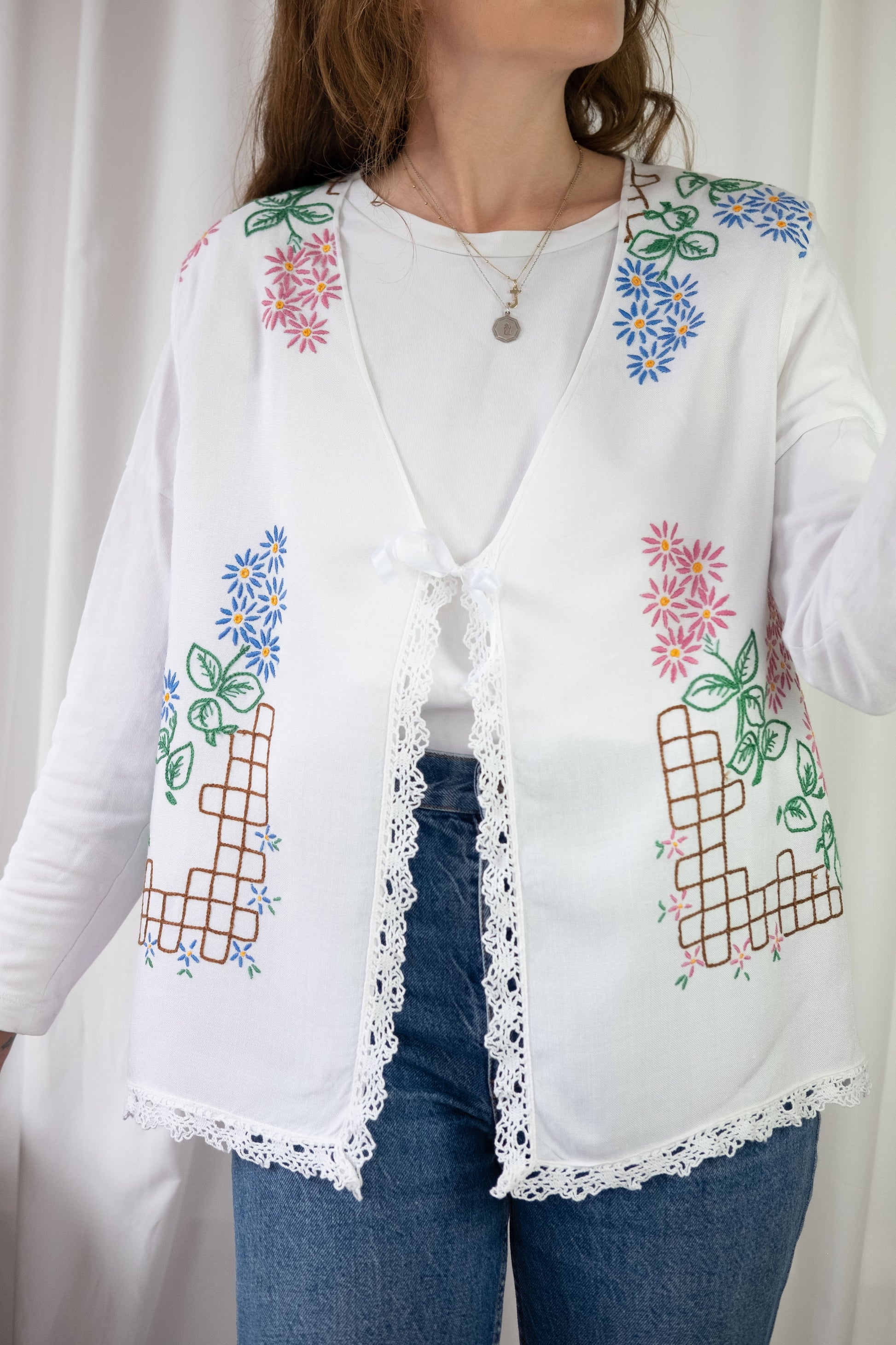 Forget Me Not ~ Reworked Vintage Linen Embroidered Waistcoat - XL