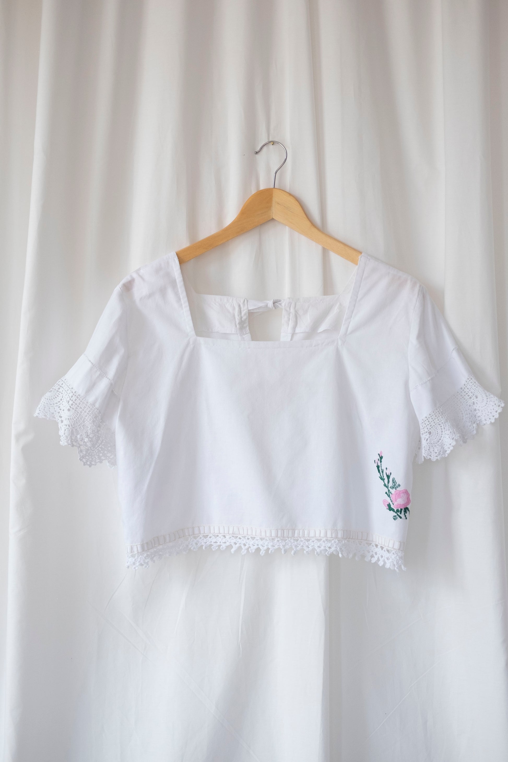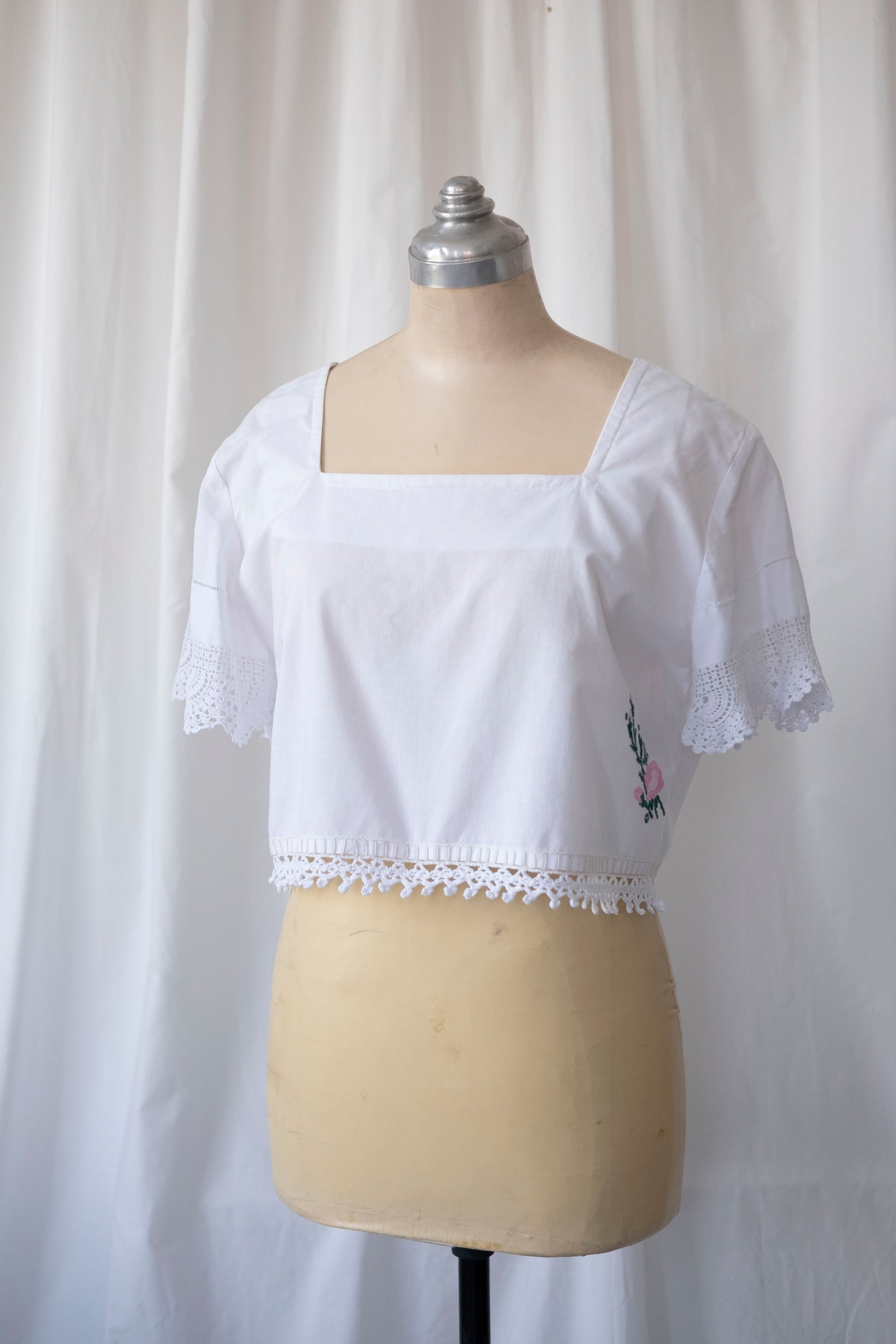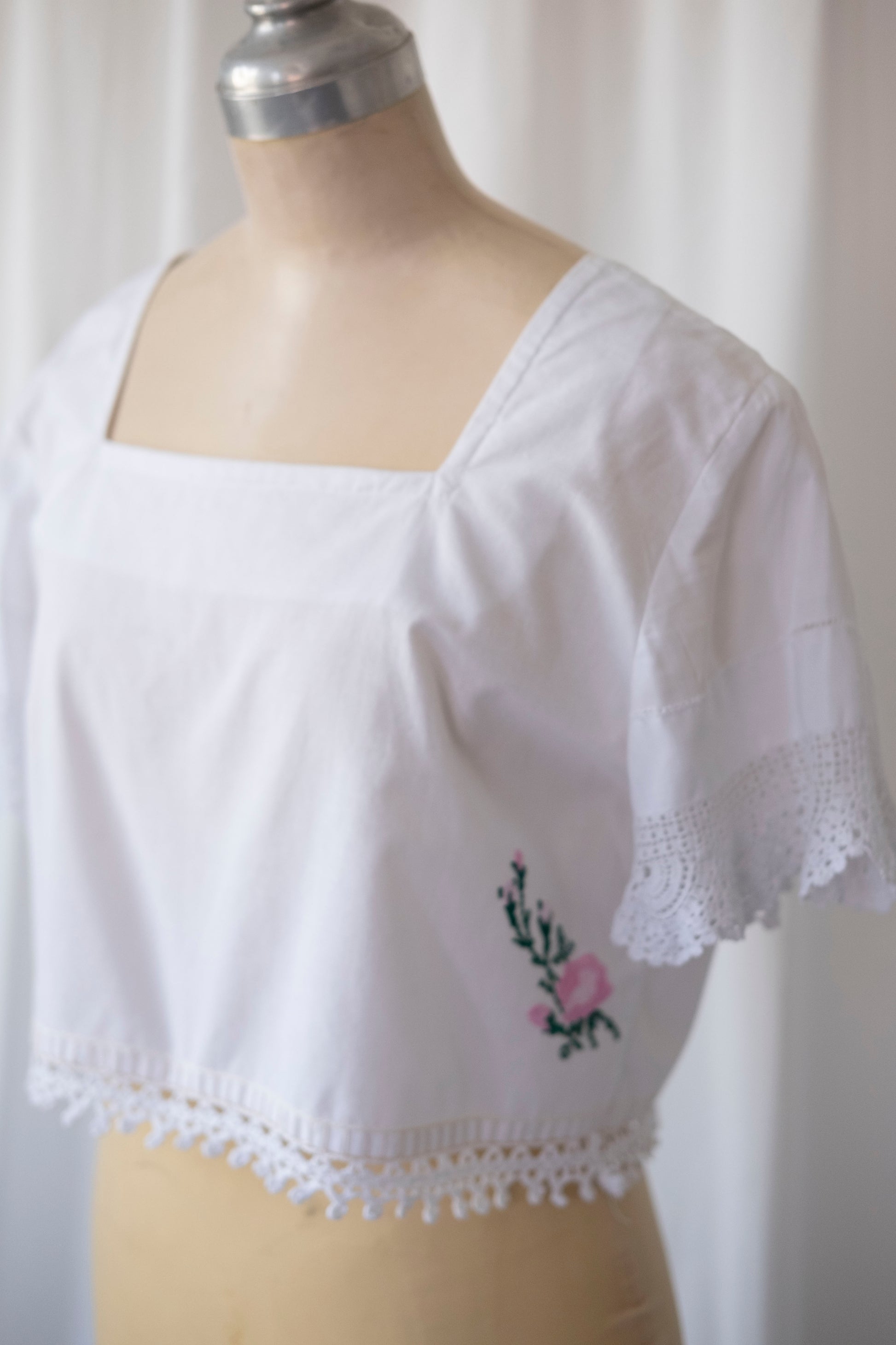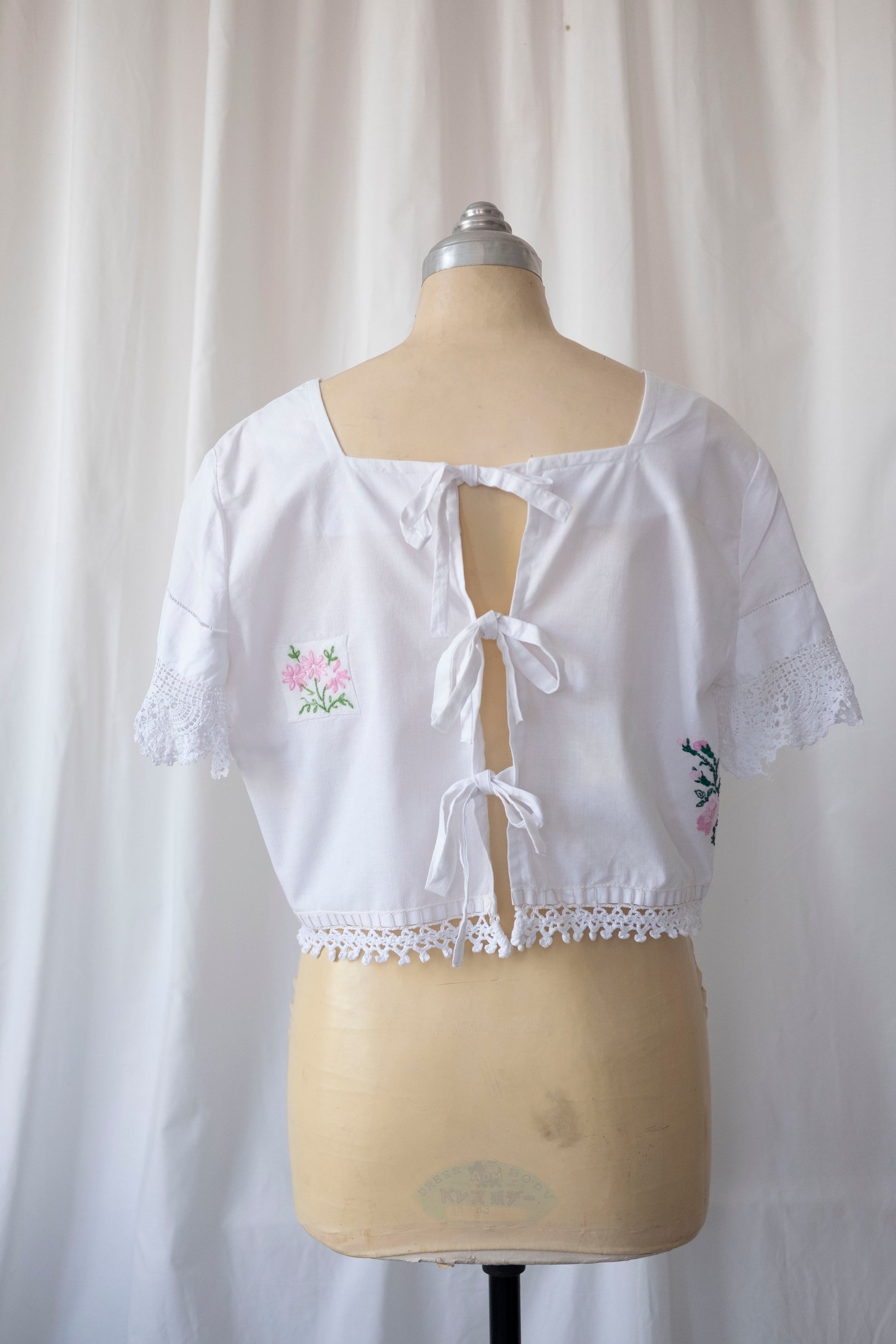 Gigi ~ Reworked Embroidered Crop Top with Tie Back - S