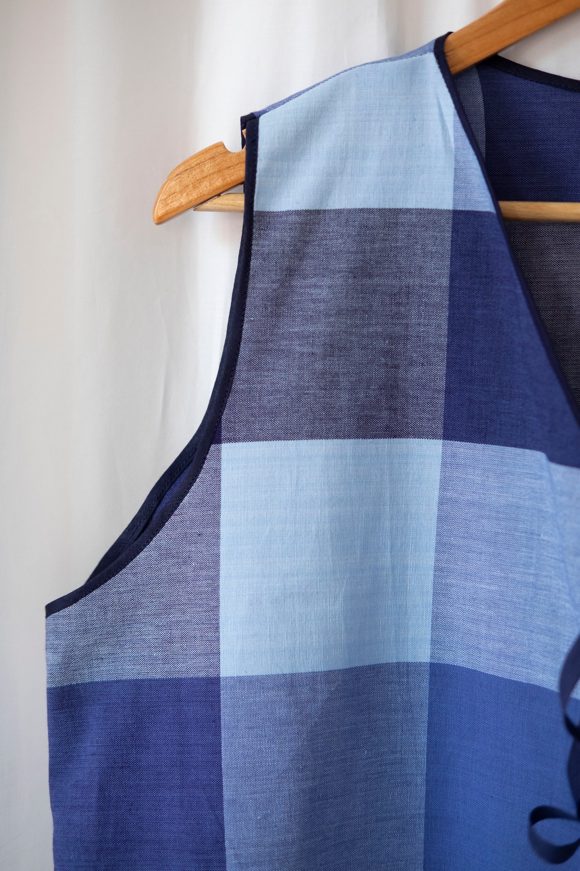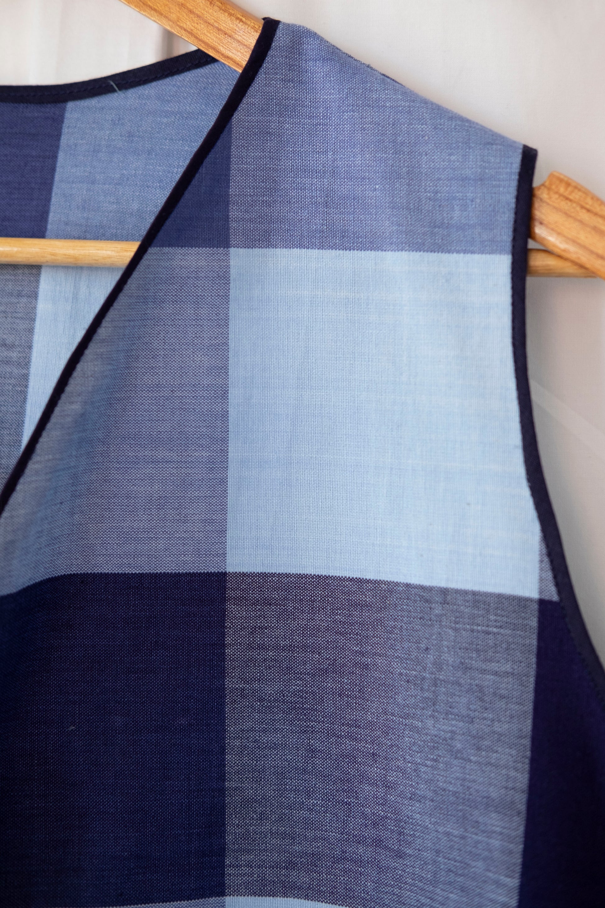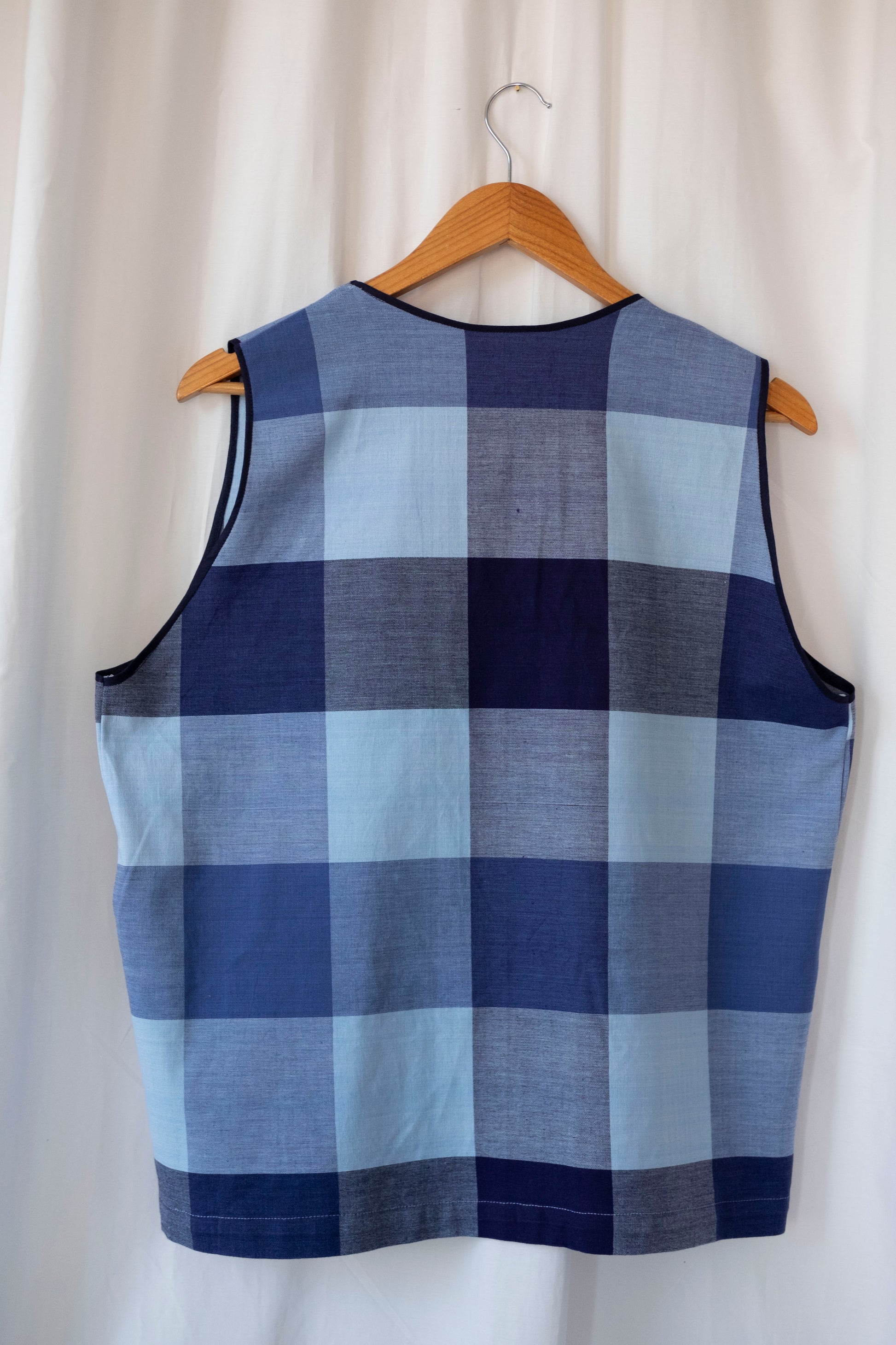 Hydrangea ~ Reworked Blue Check Tie Waistcoat - L