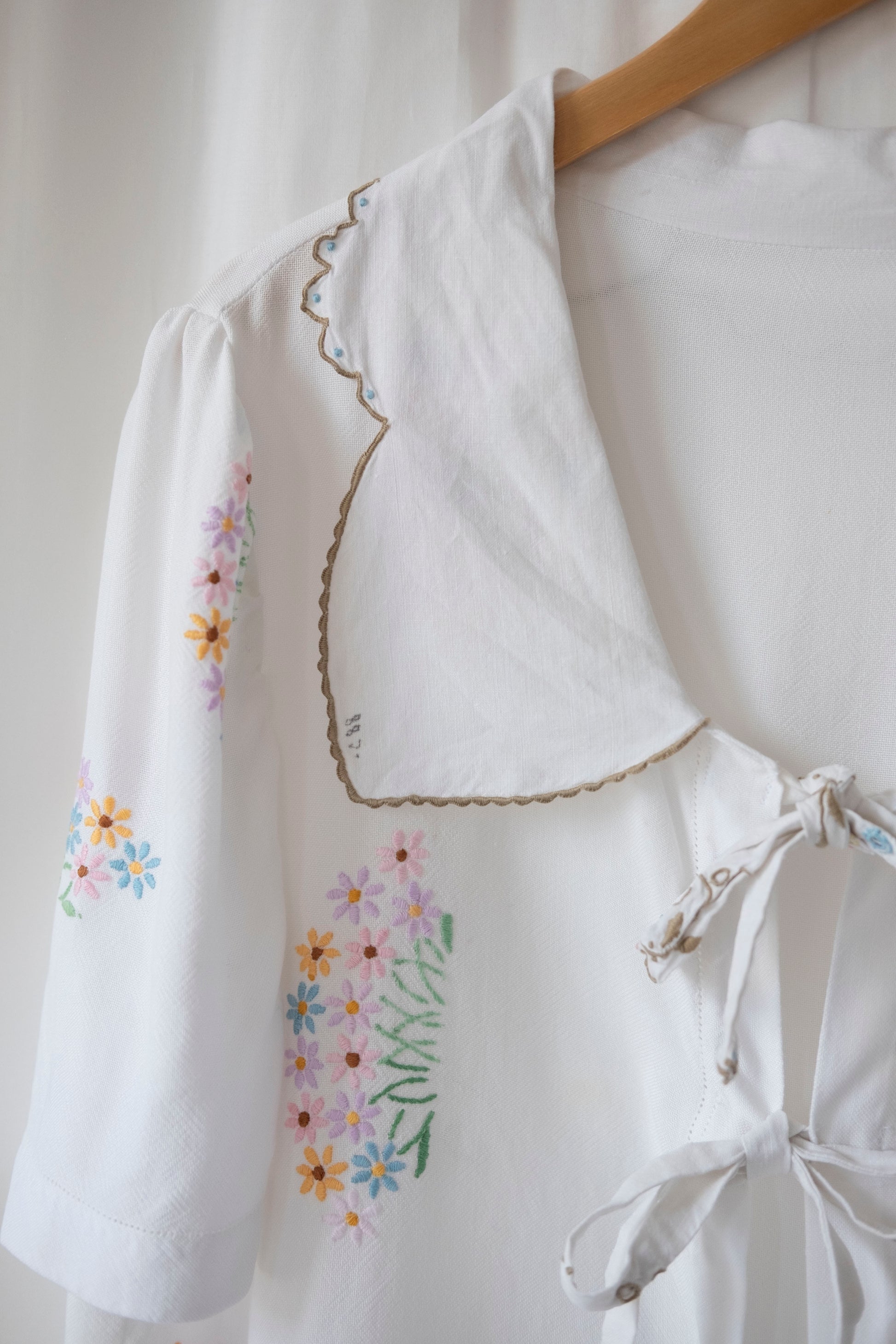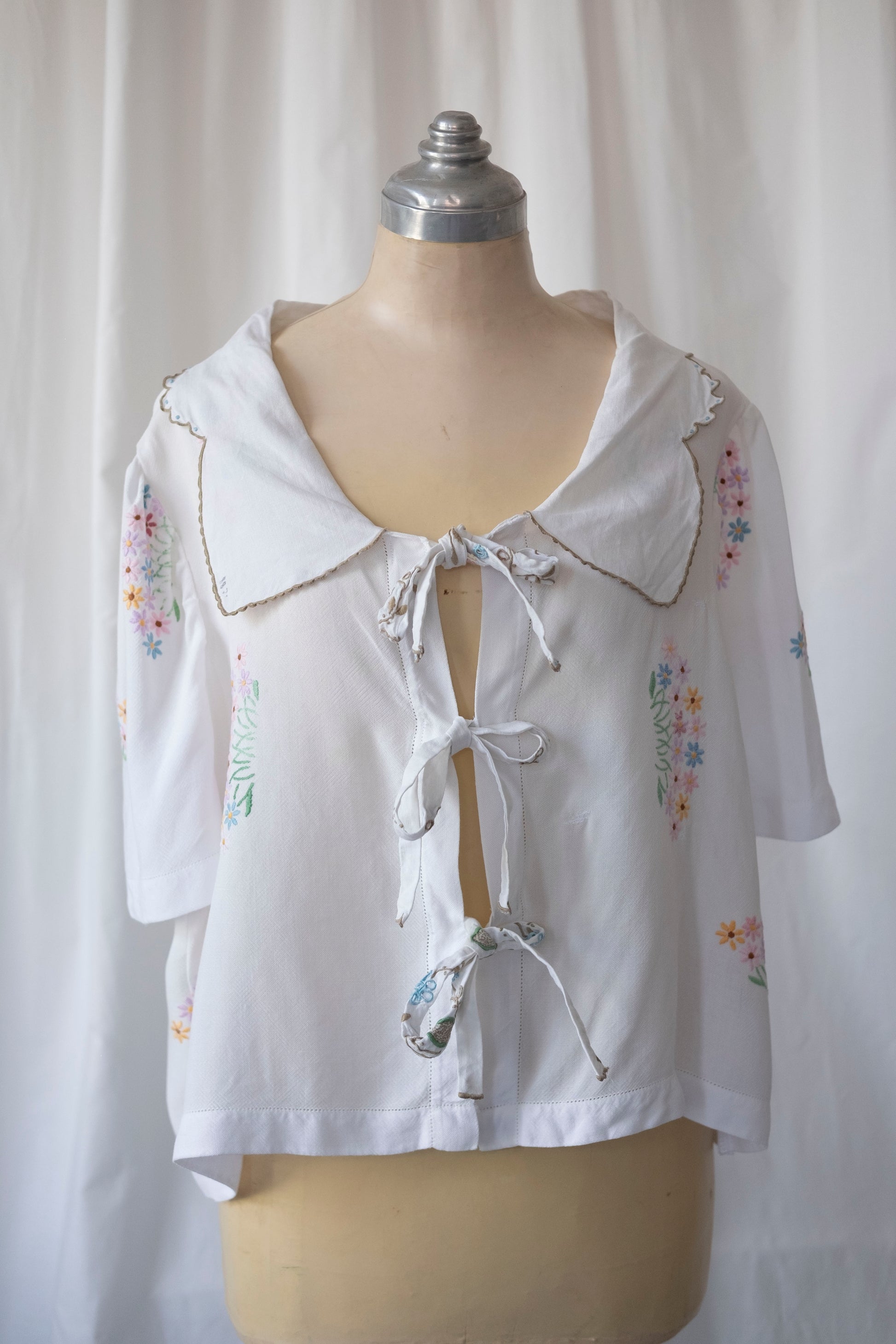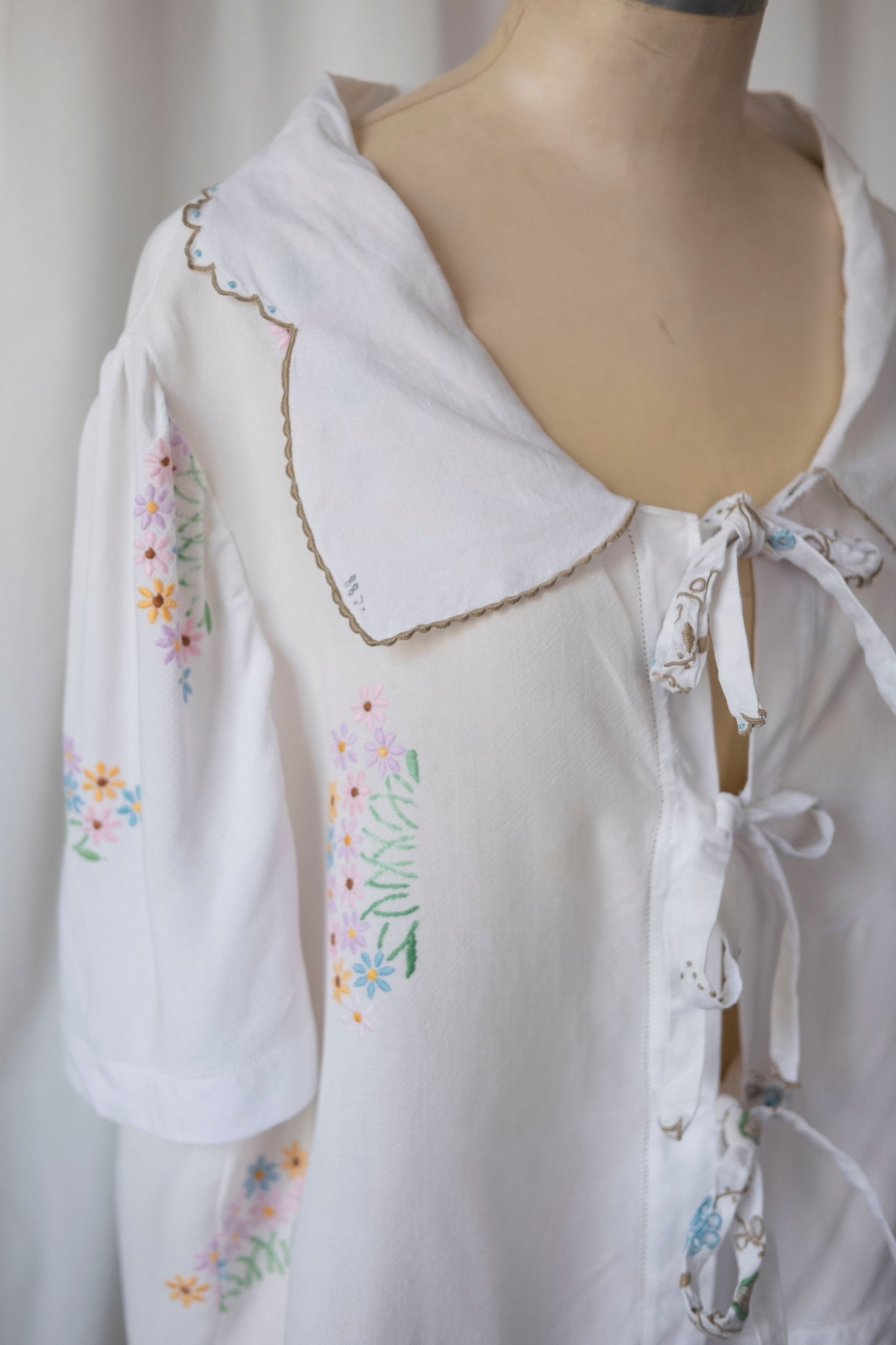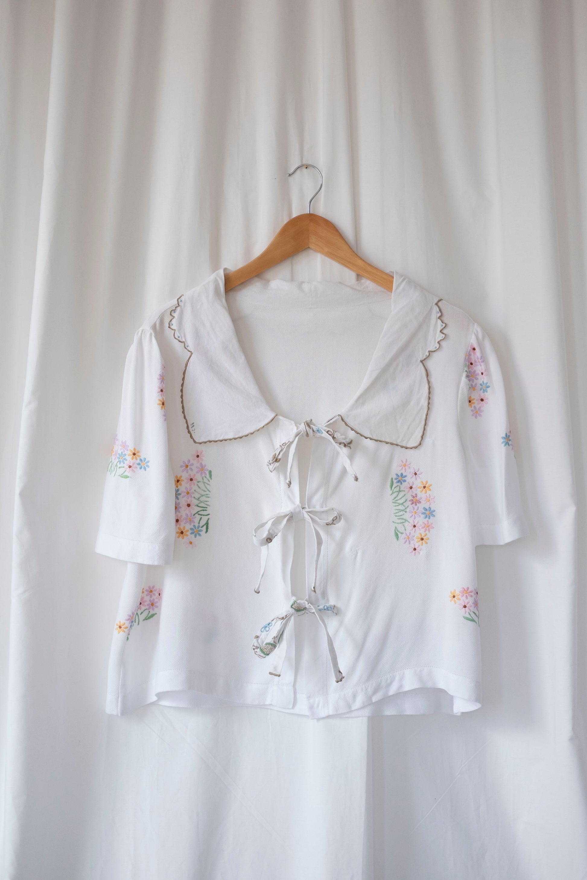 Marianne ~ Reworked Embroidered Tie Shirt - L