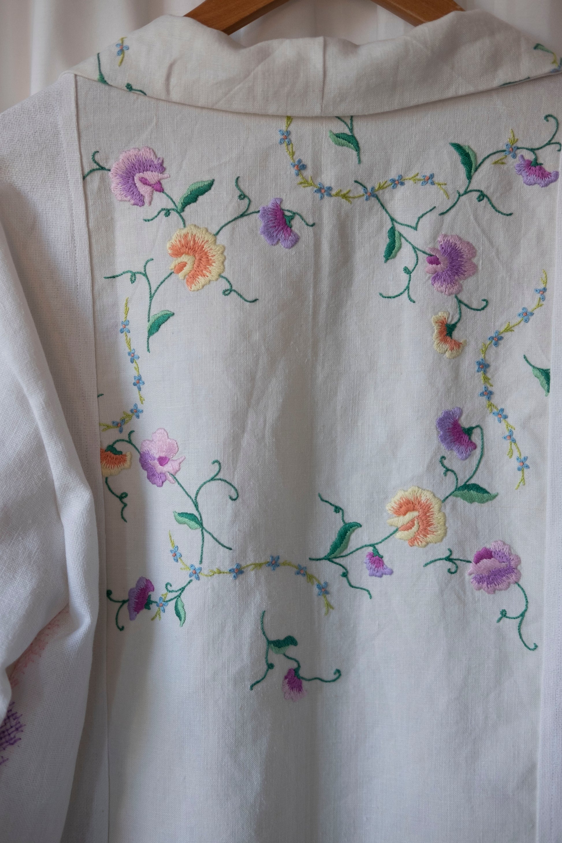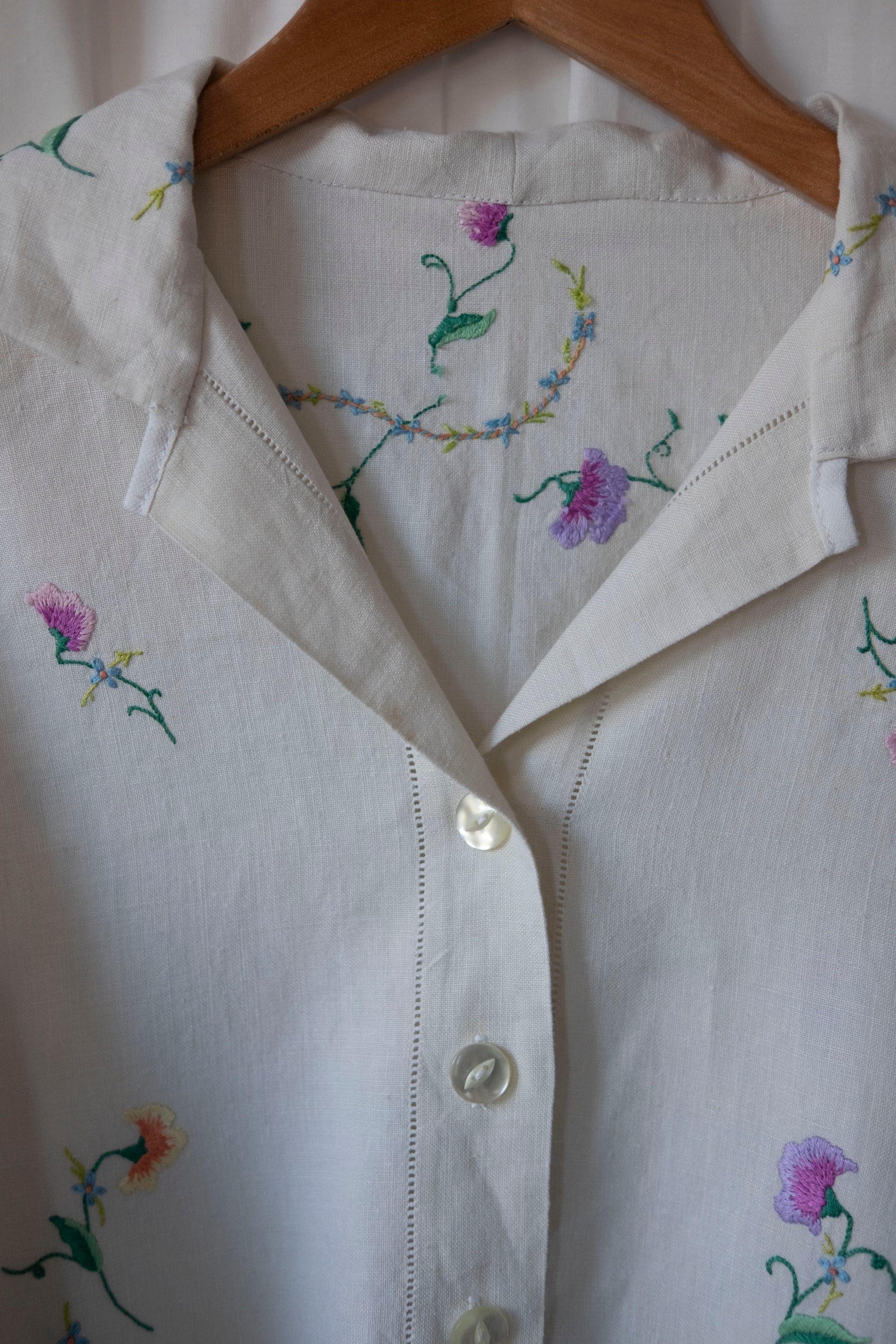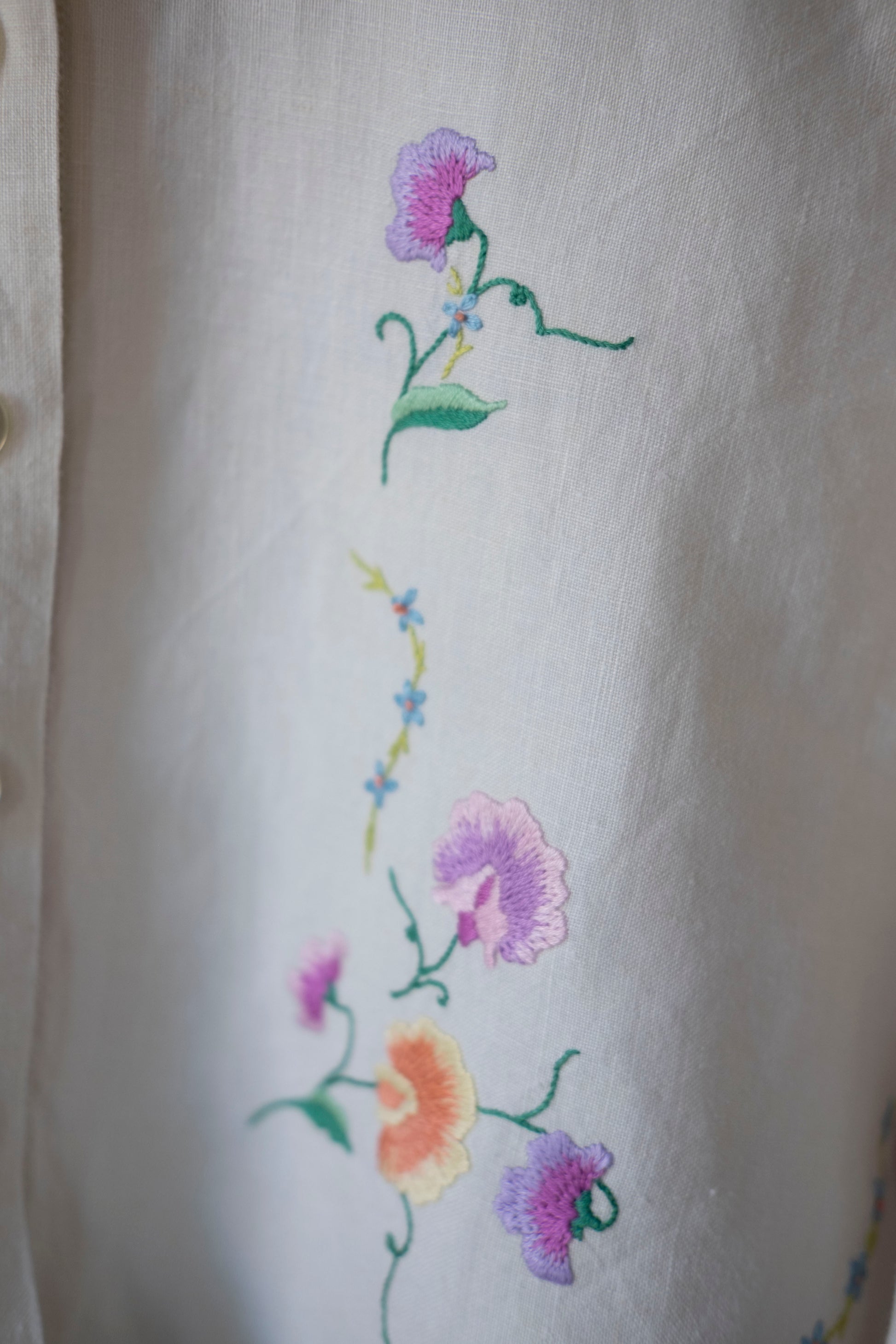 Pansy ~ Reworked Vintage Linen Embroidered Shirt - M/L