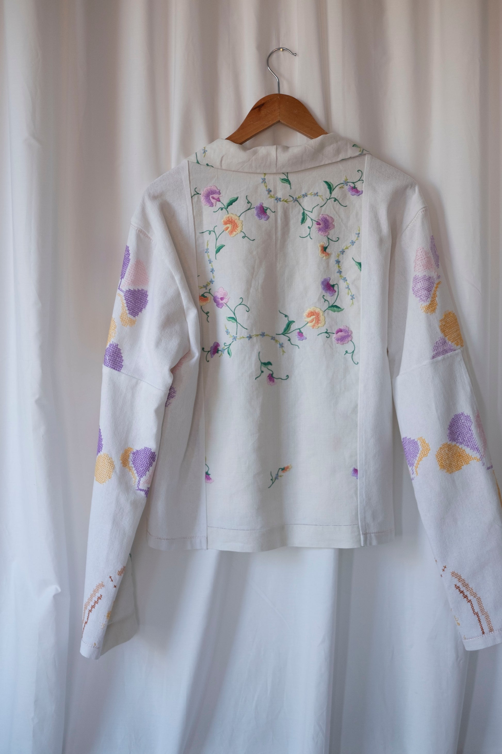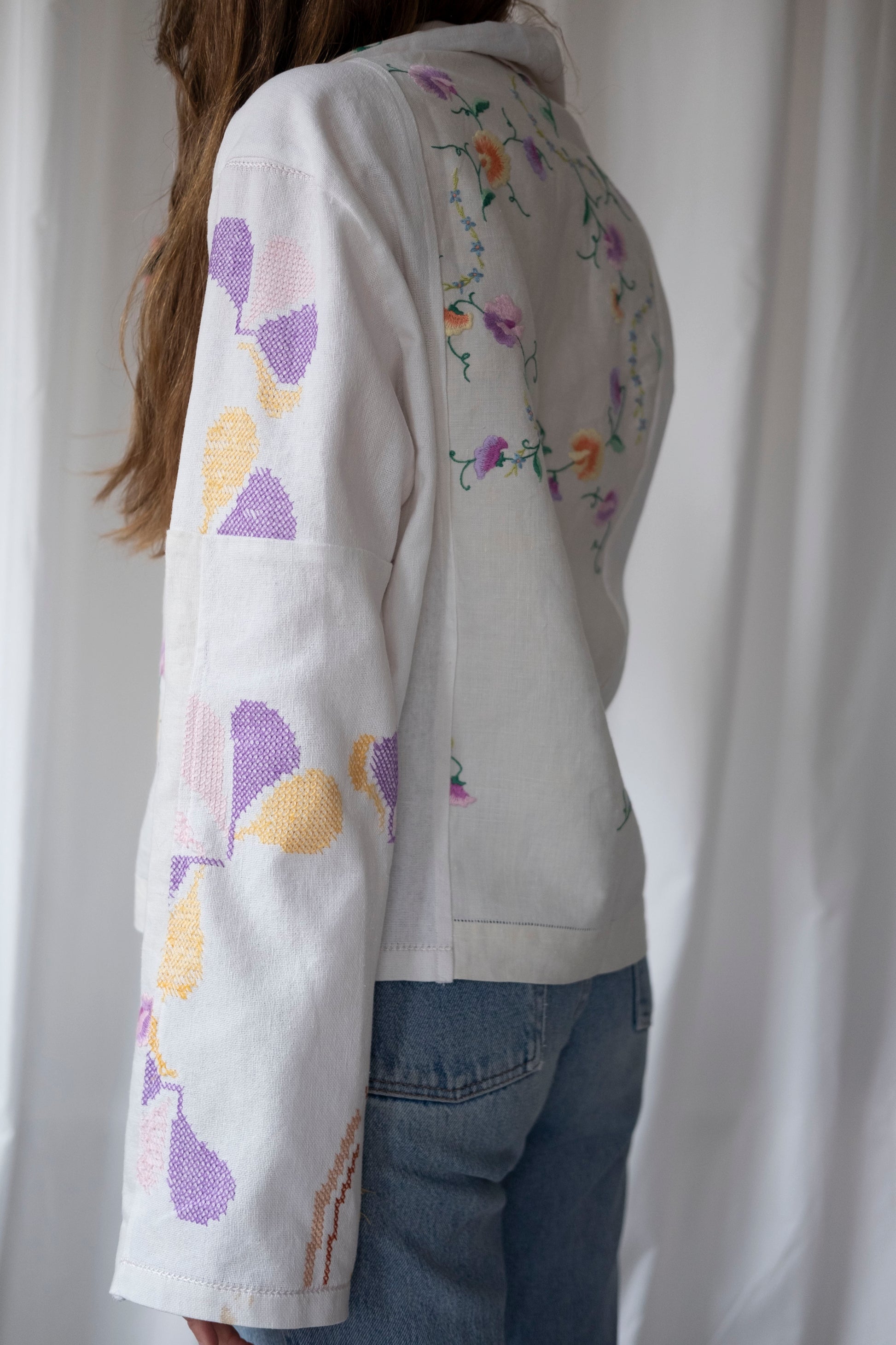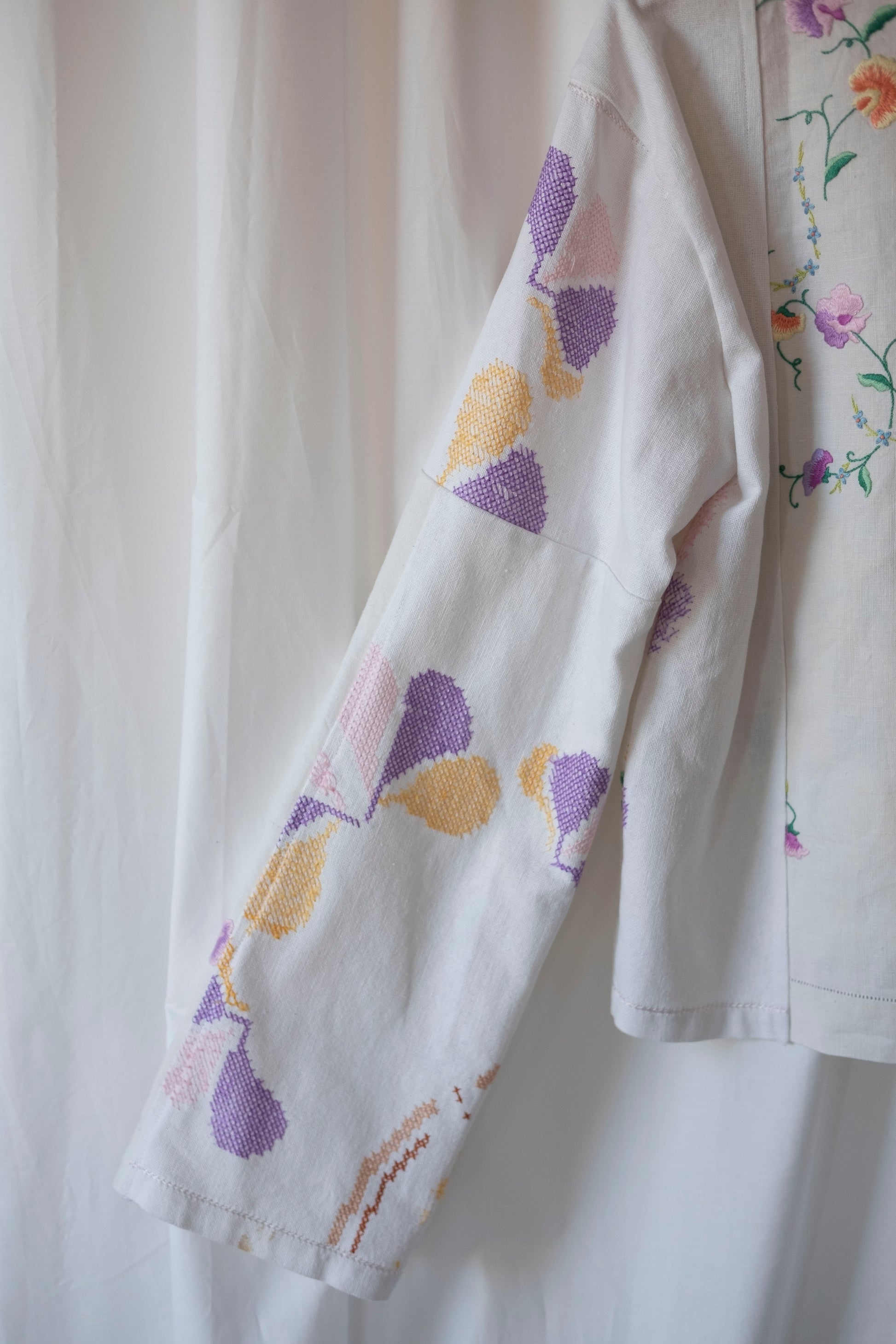 Pansy ~ Reworked Vintage Linen Embroidered Shirt - M/L
