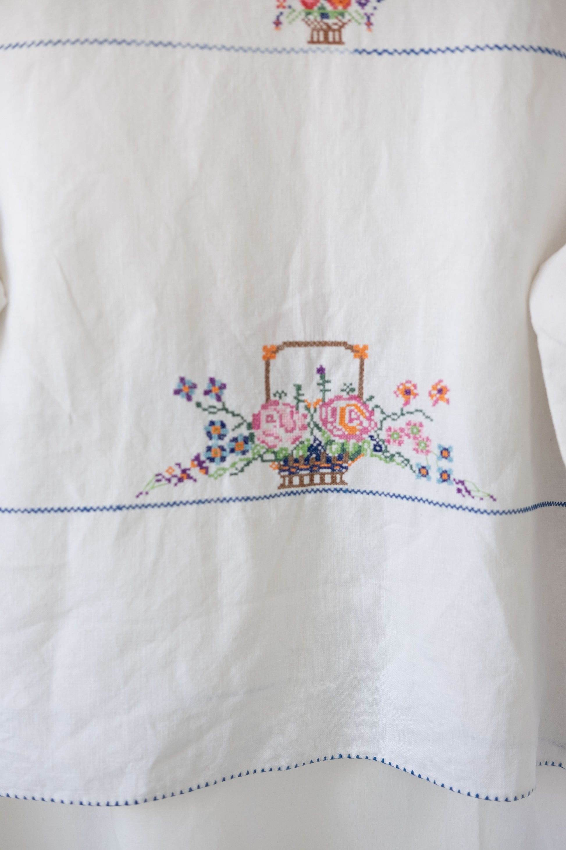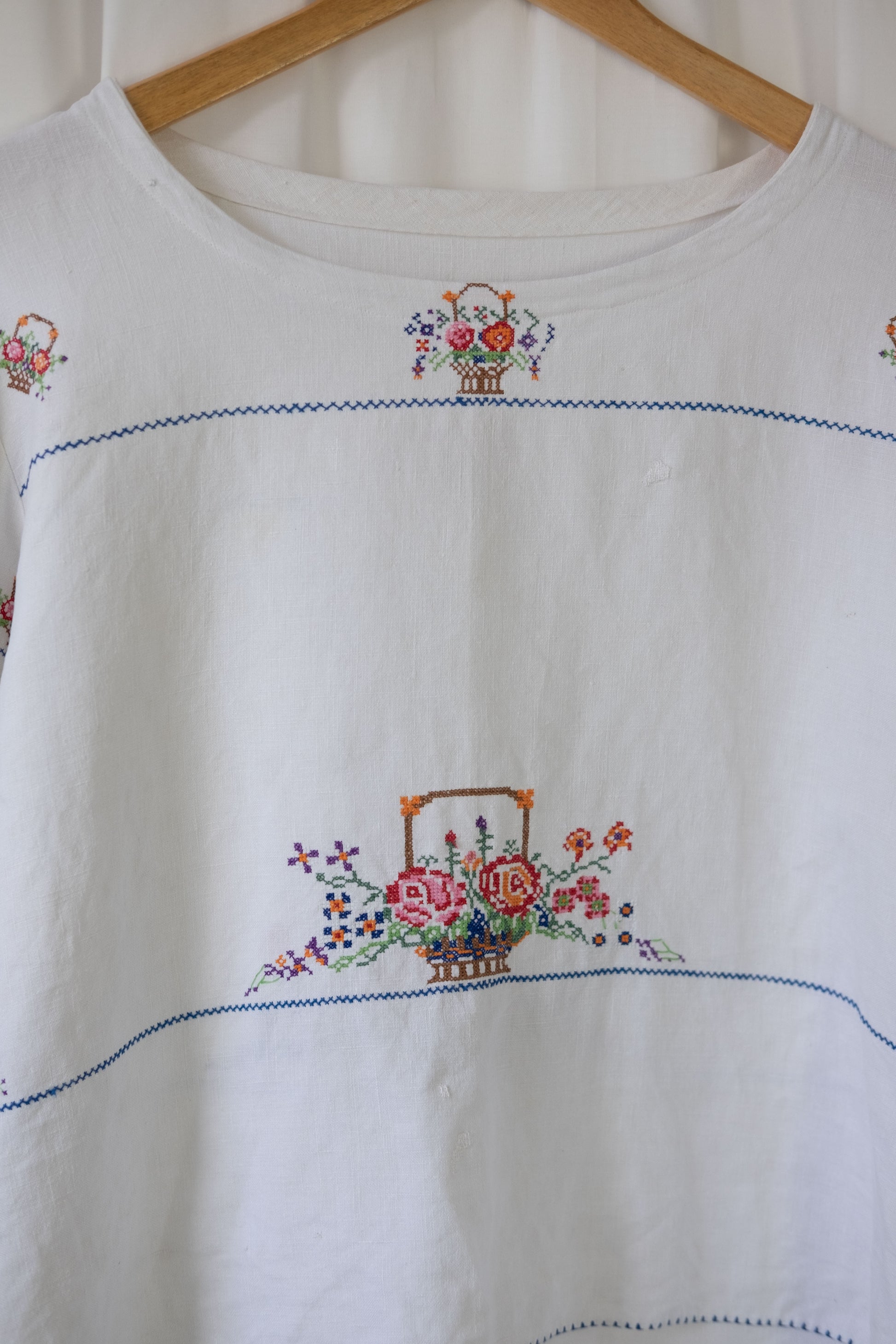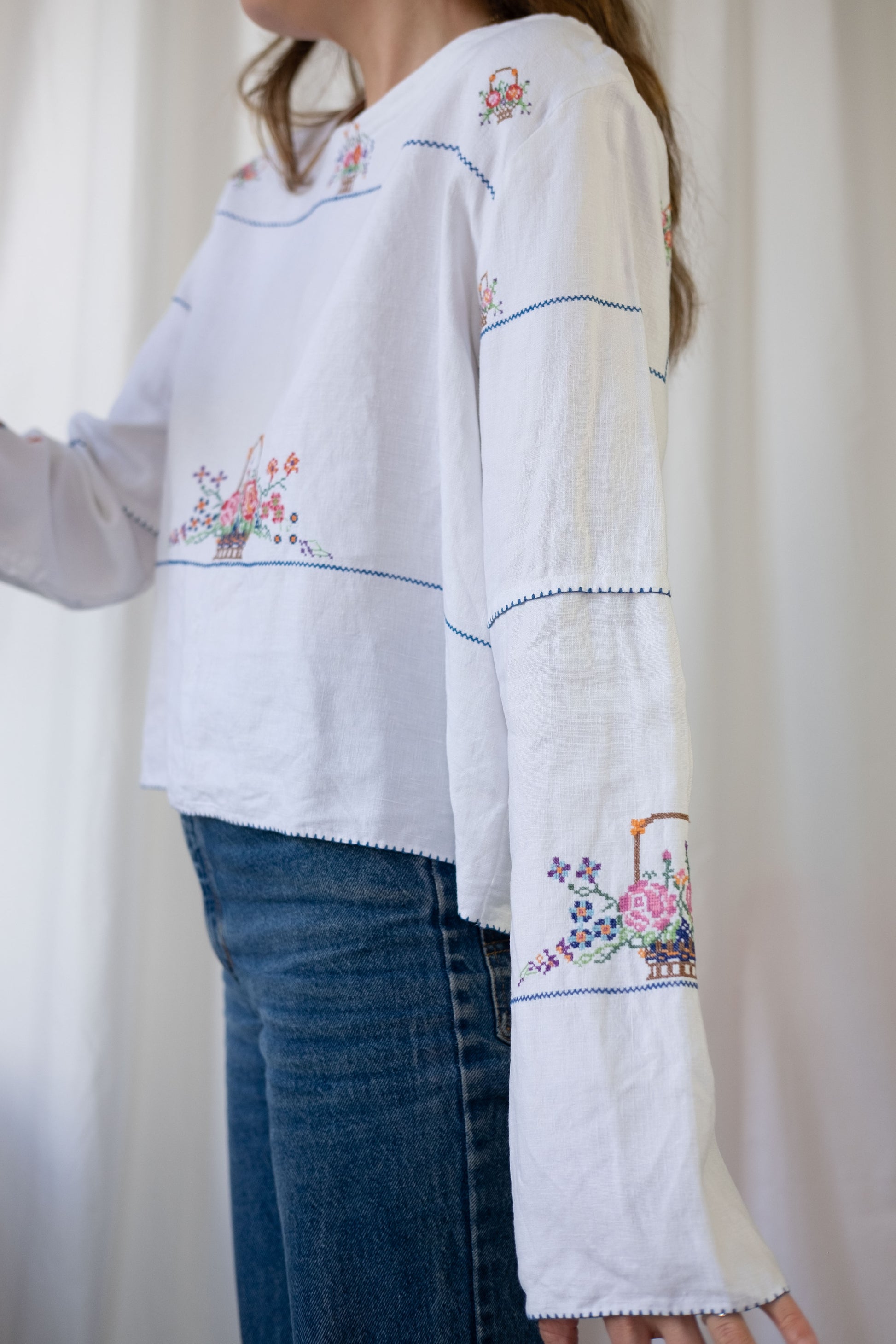 Rose ~ Reworked Vintage Linen Embroidered Long Sleeve - L