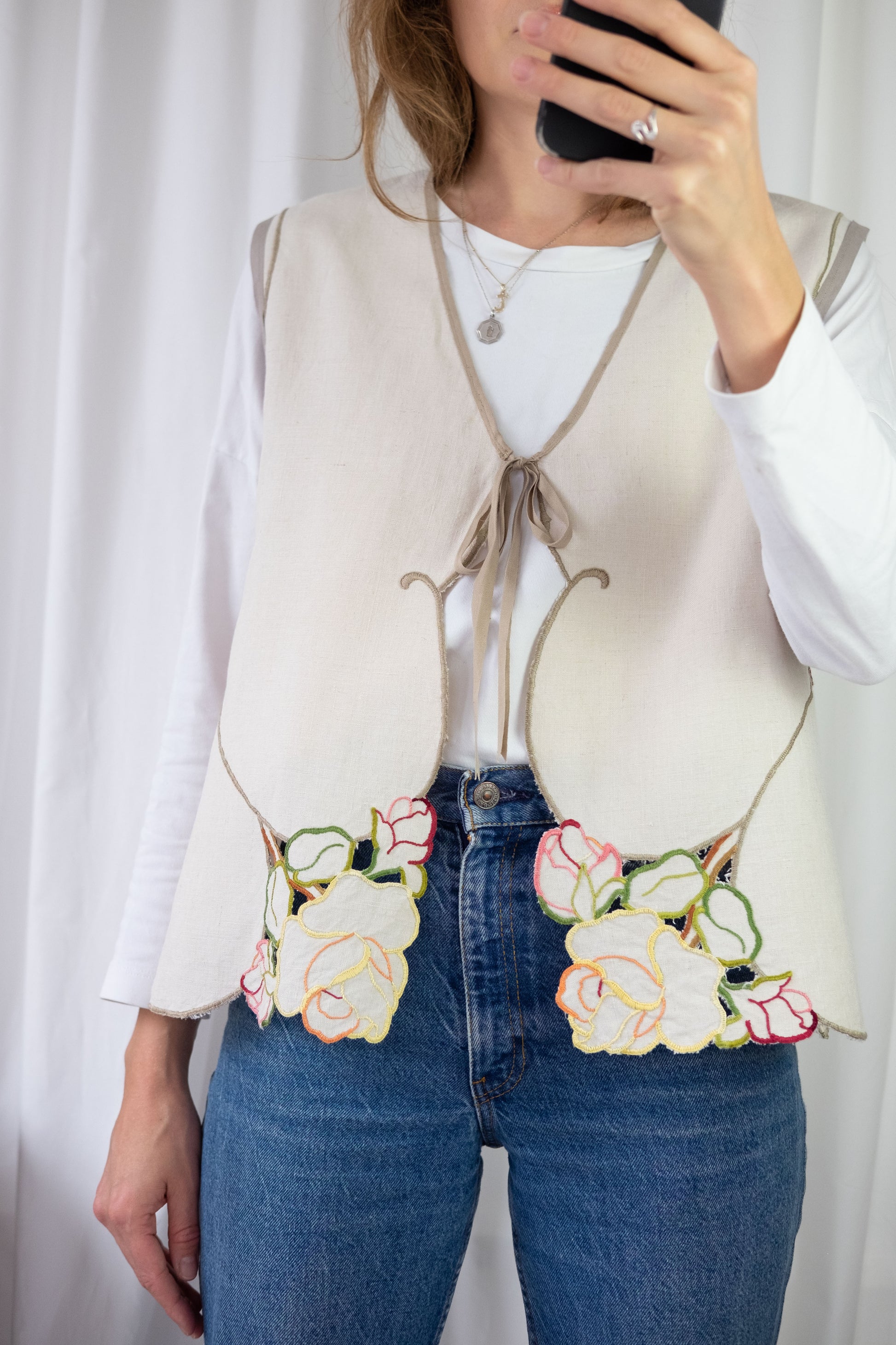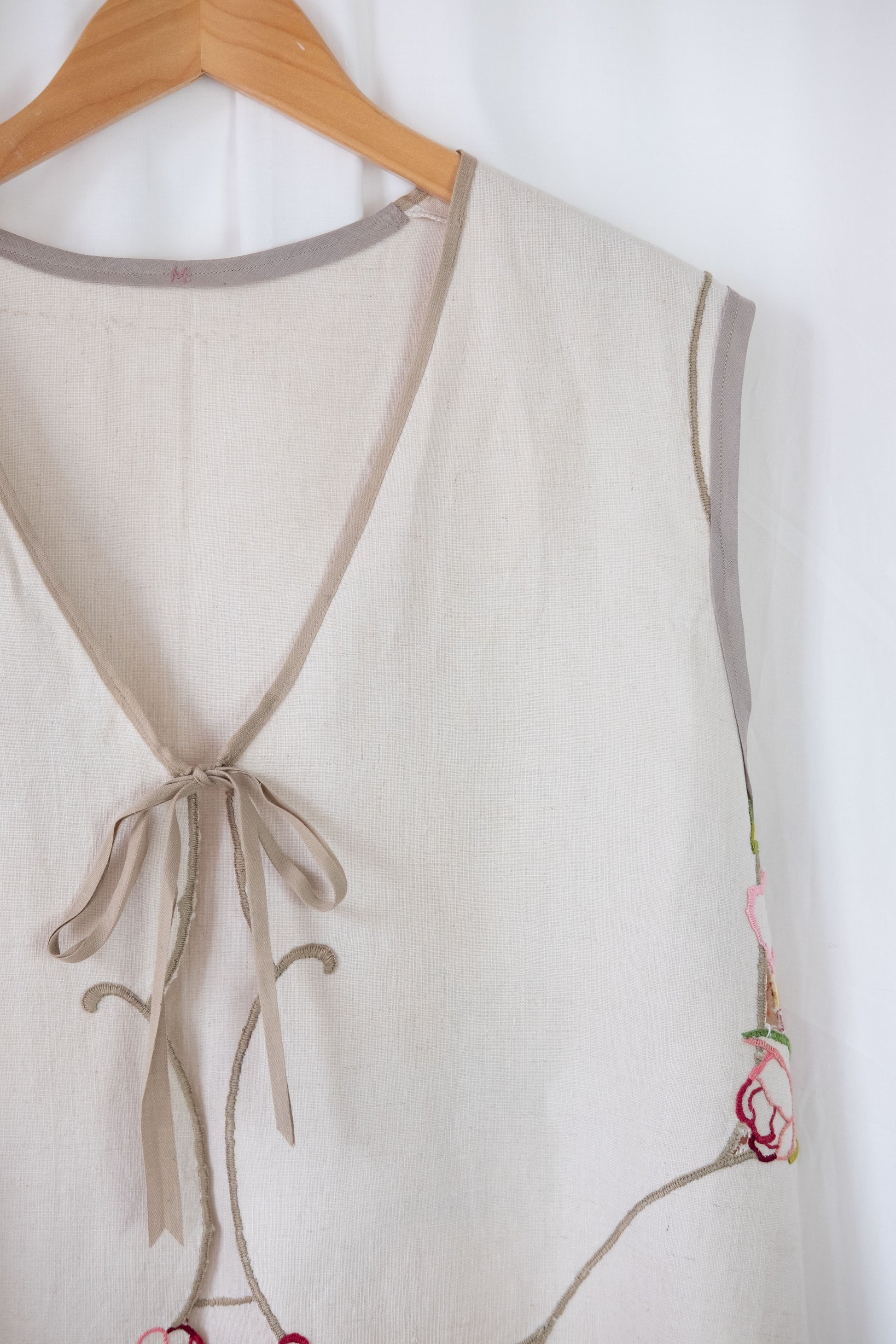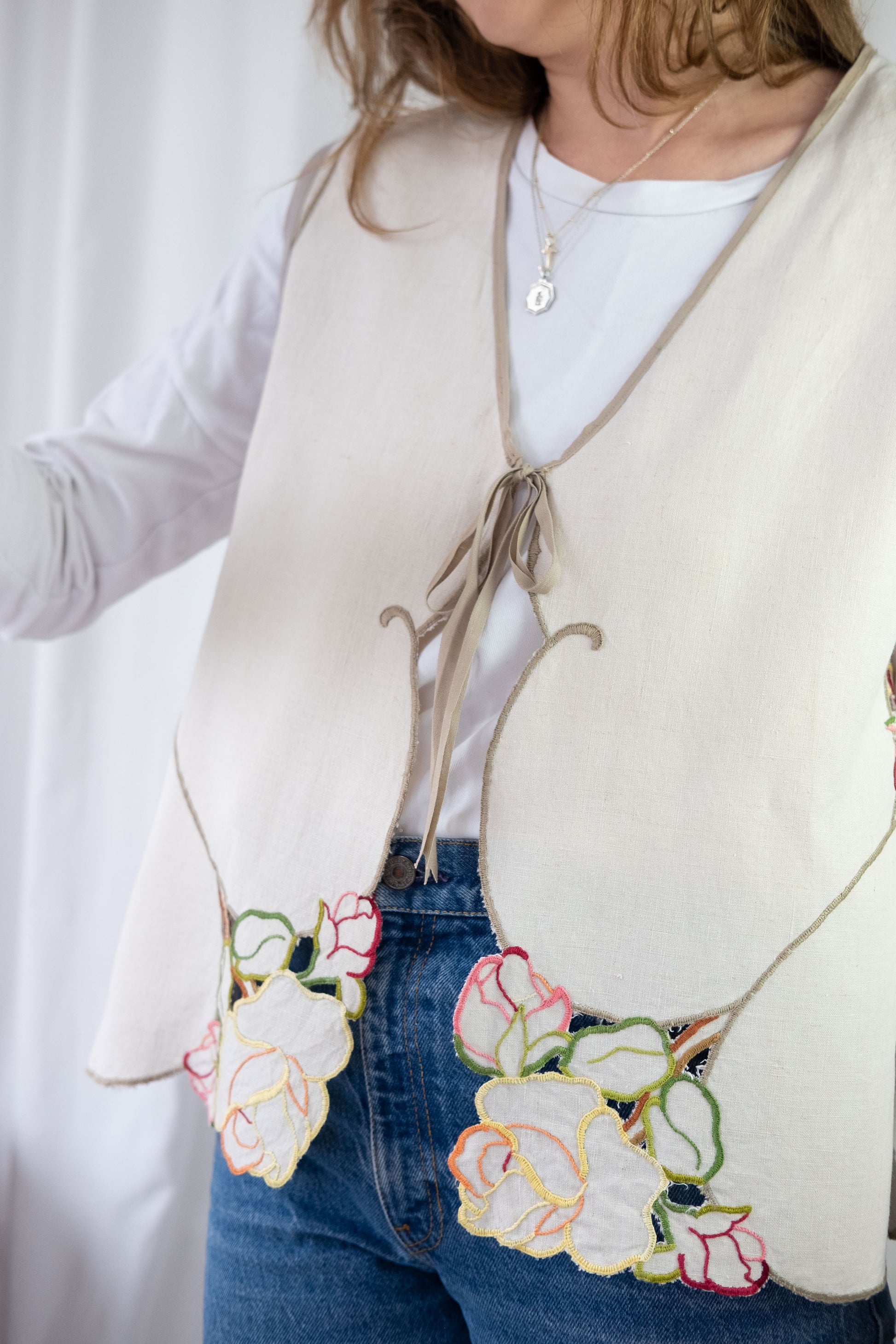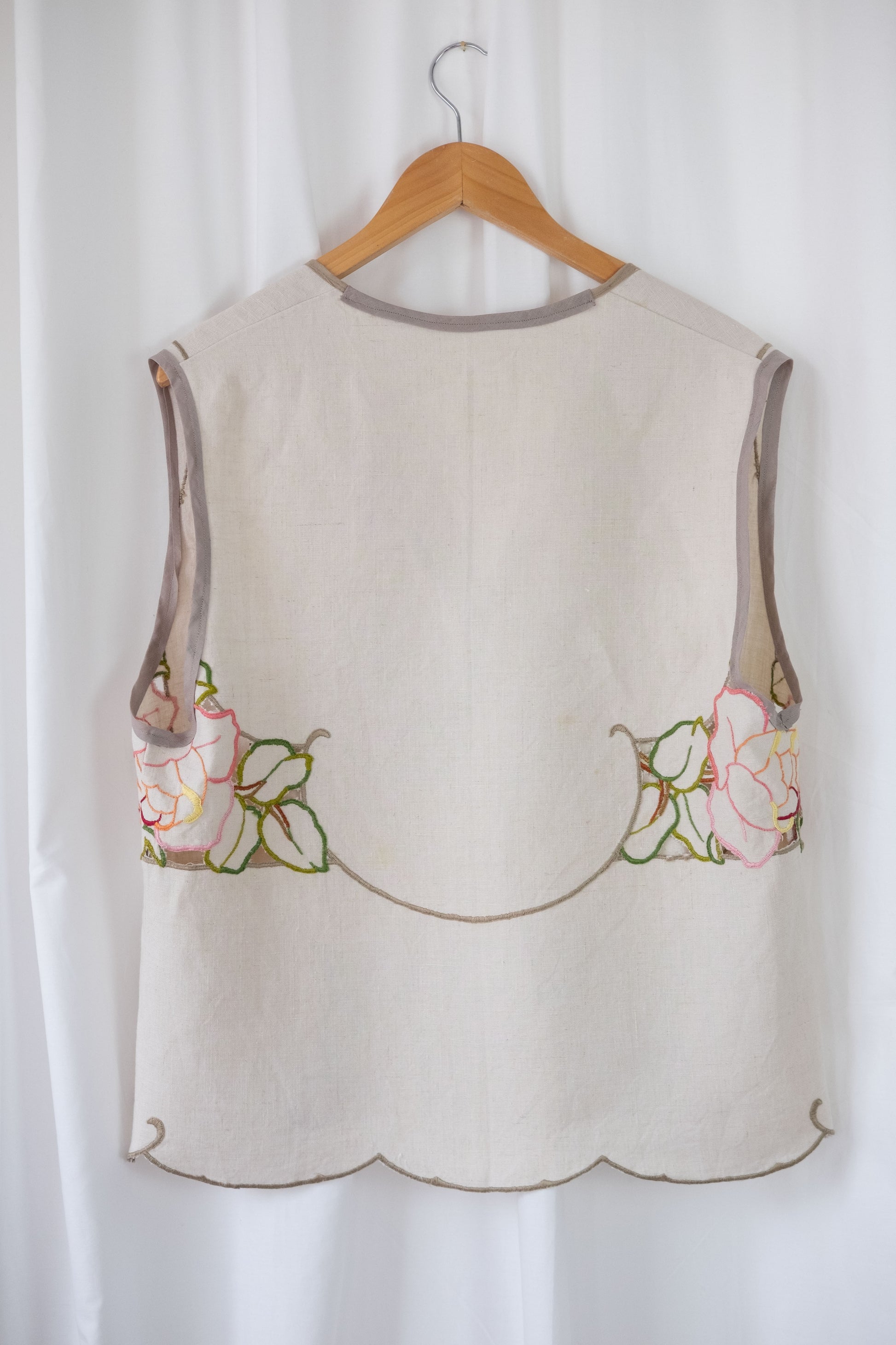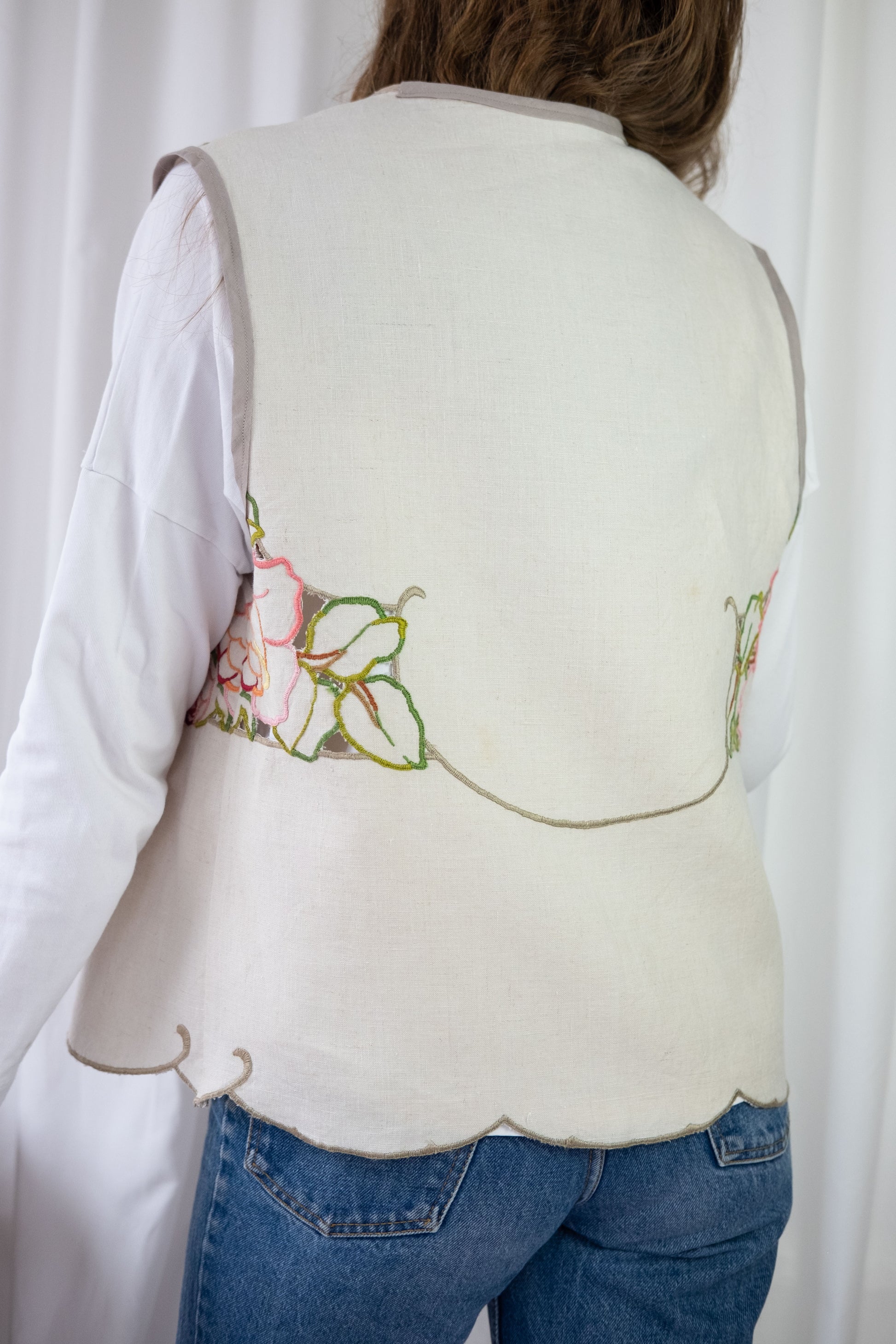 Lark ~ Reworked Vintage Linen Embroidered Waistcoat - M/L