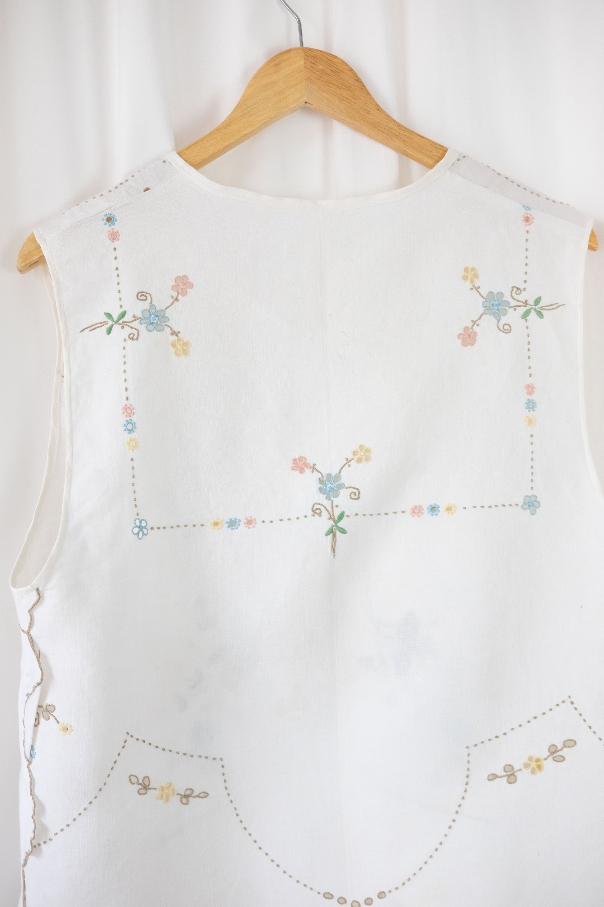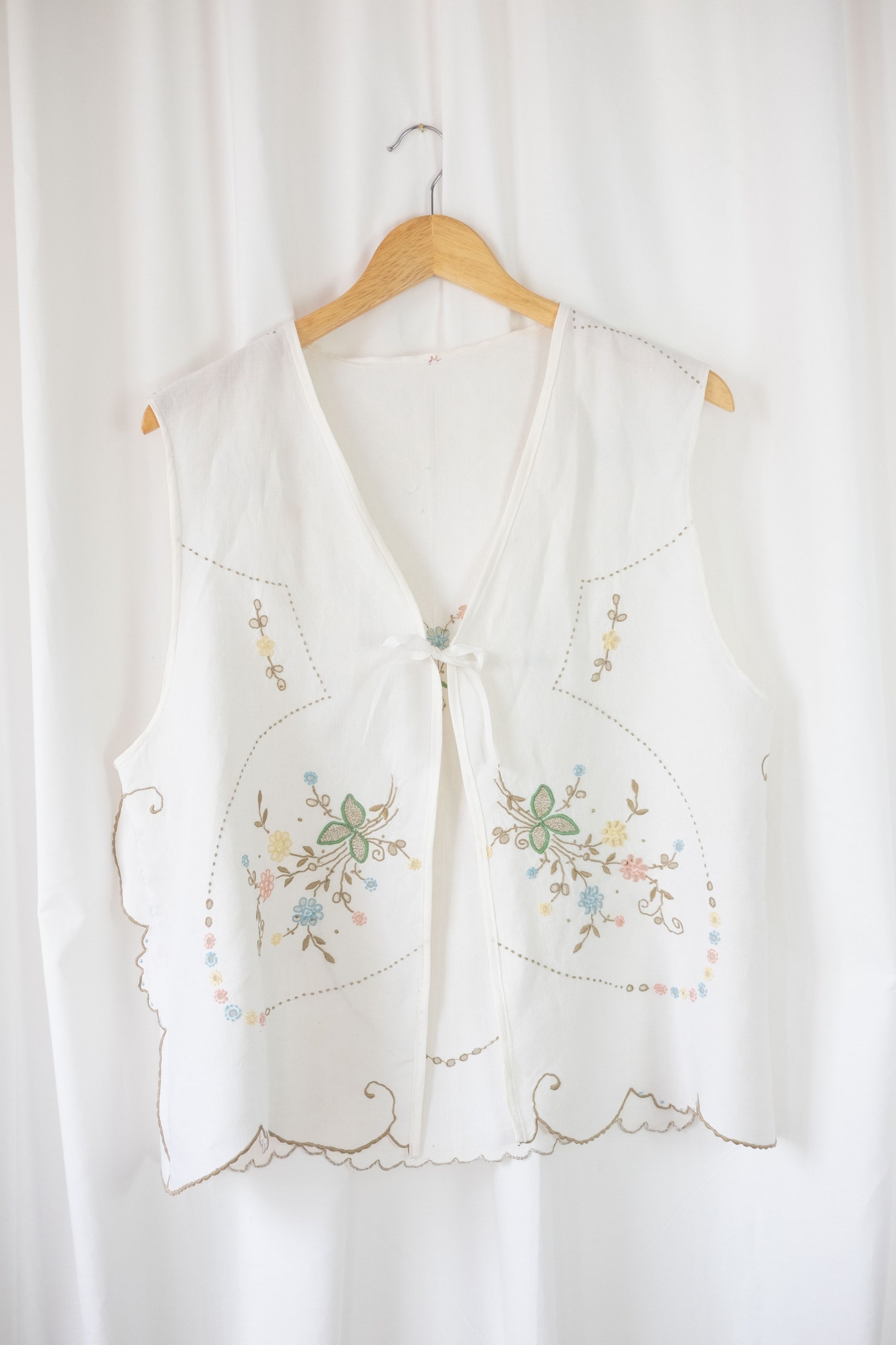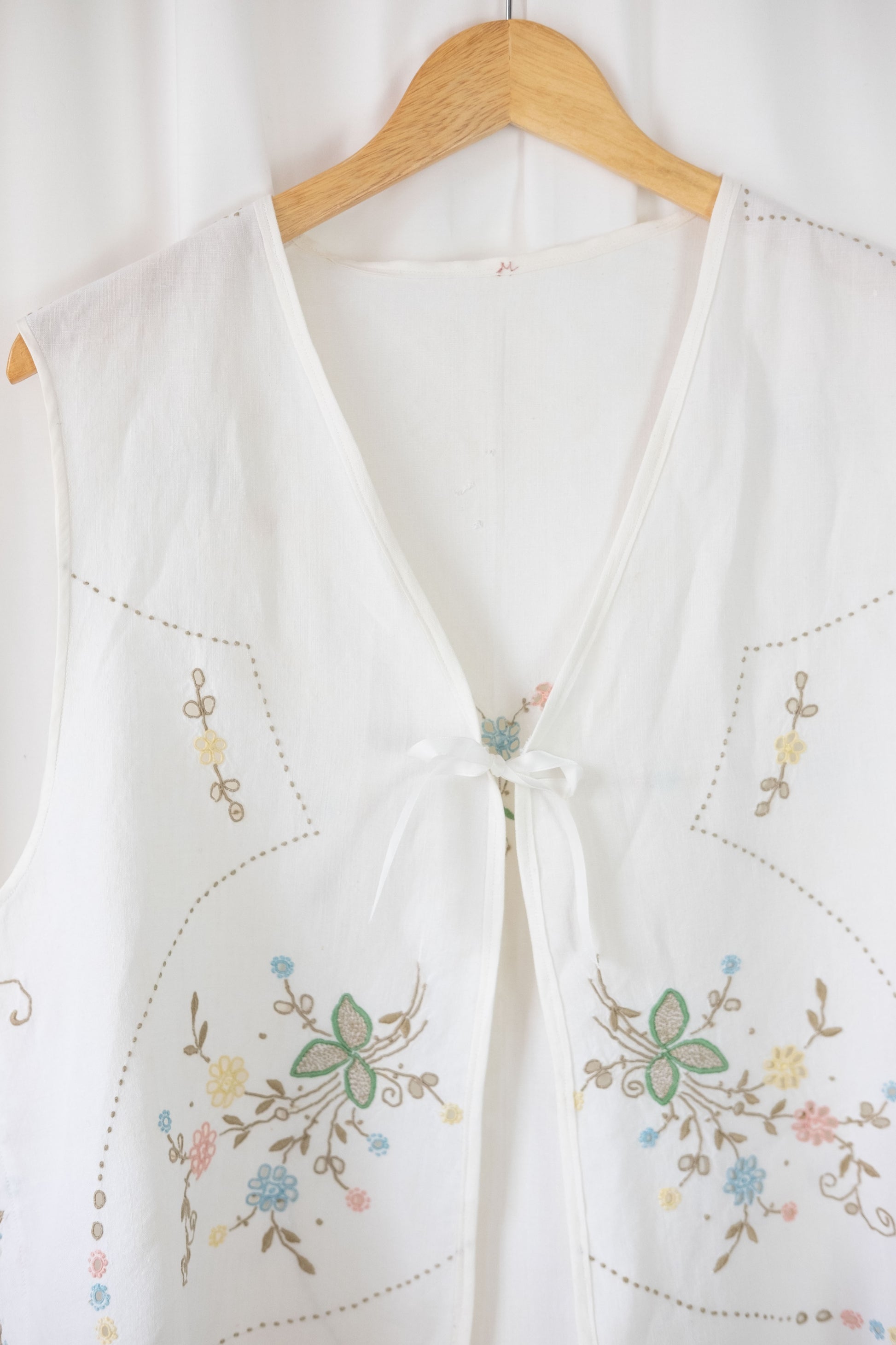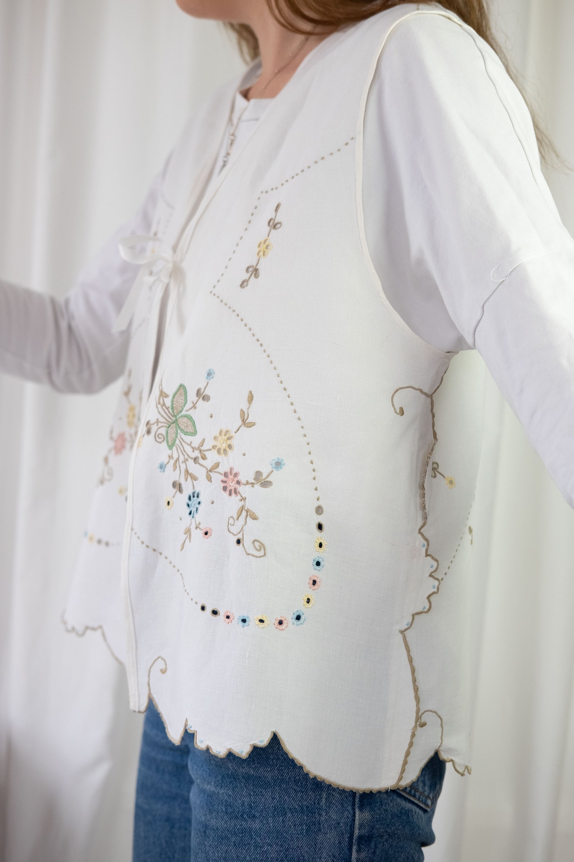 Sweet Pea ~ Reworked Vintage Linen Embroidered Waistcoat - M