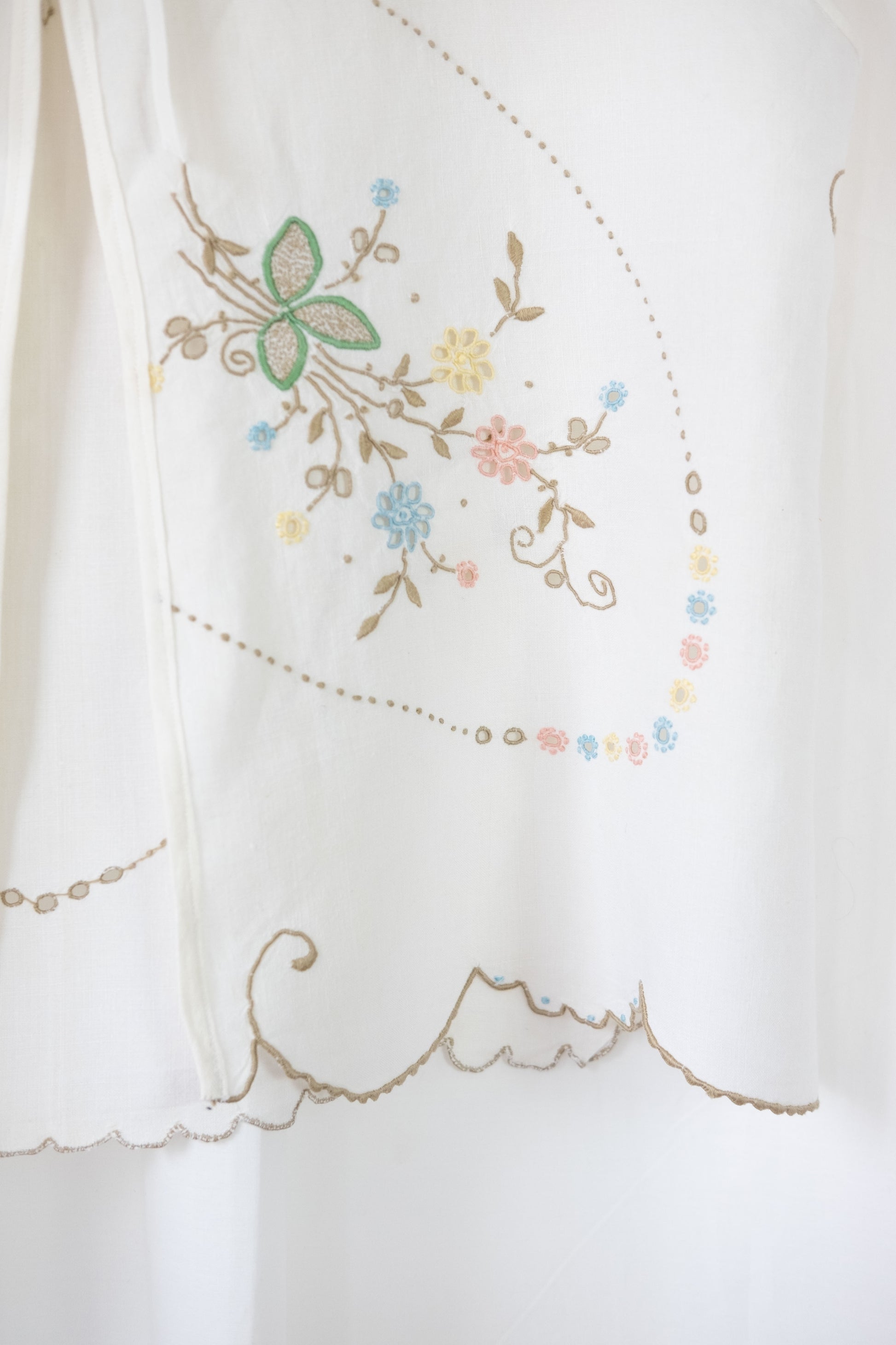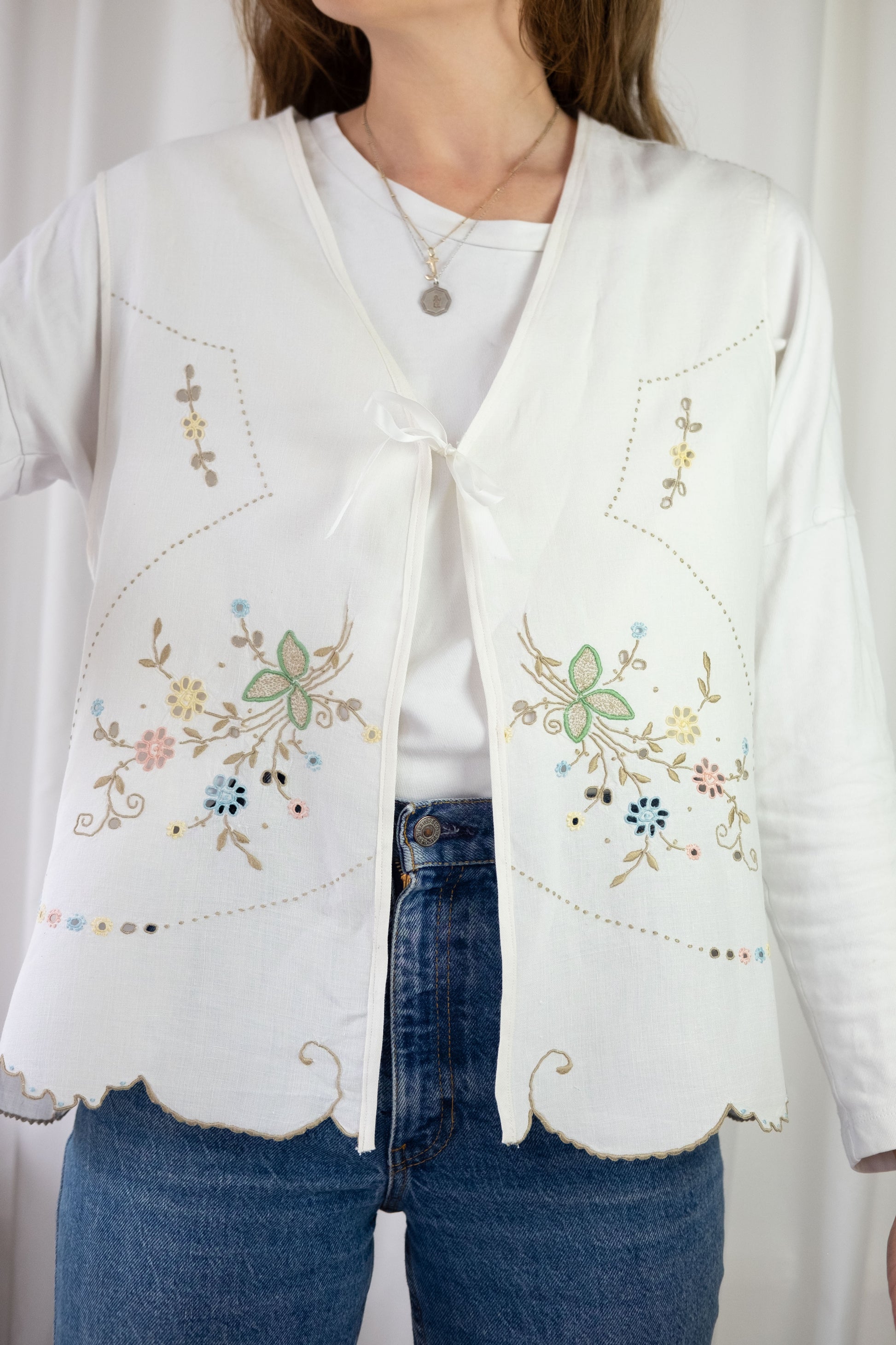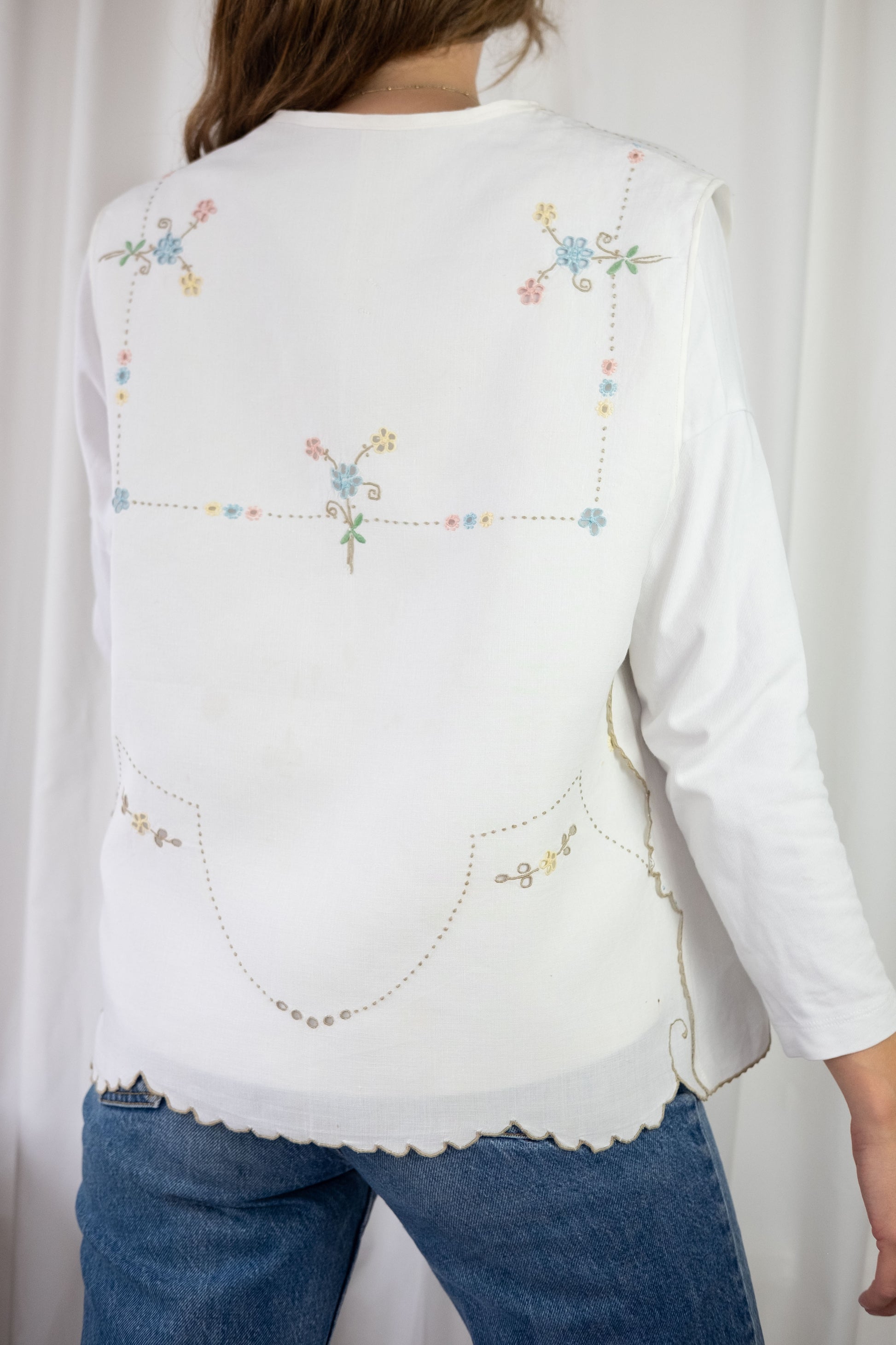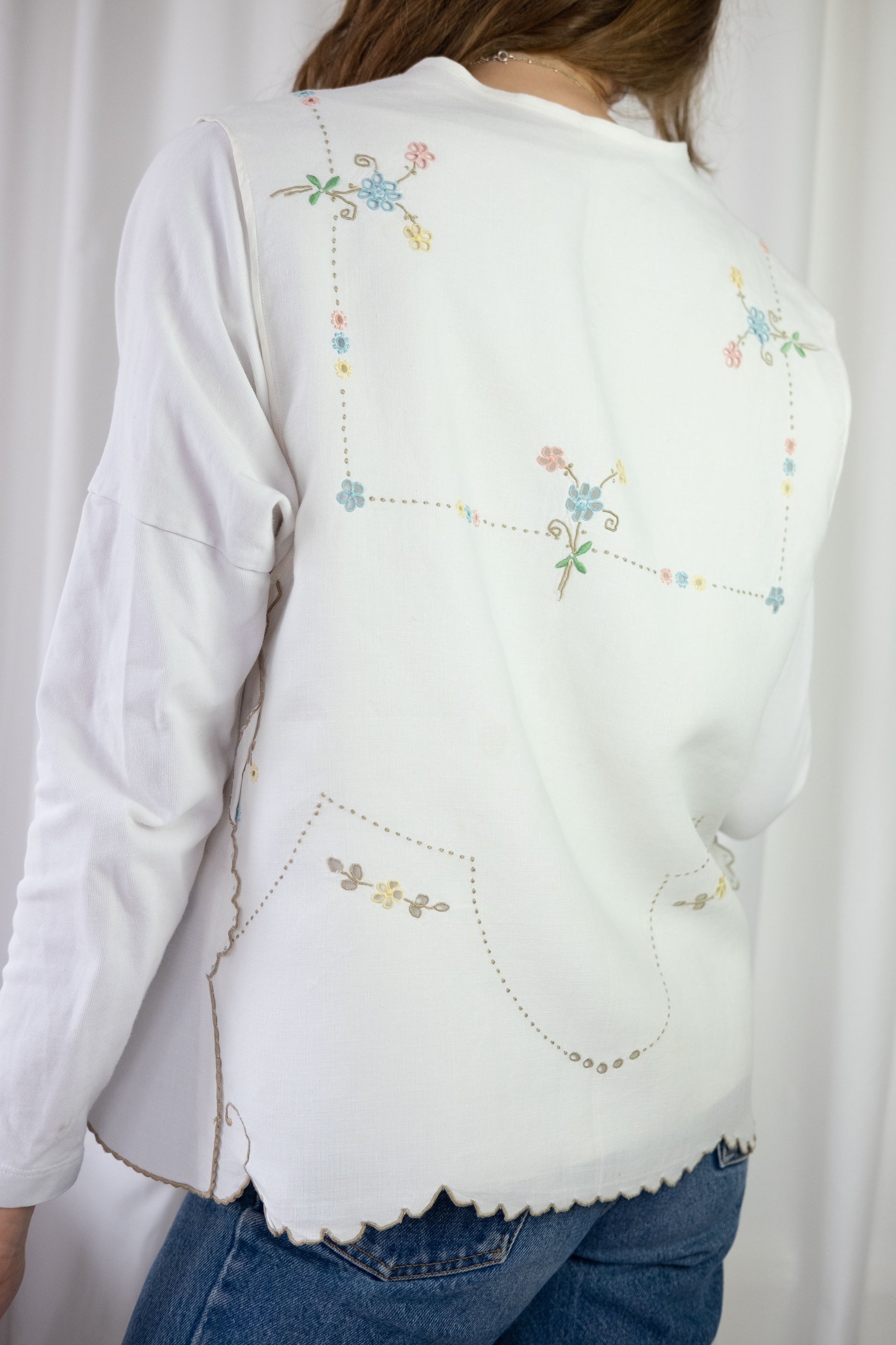 Sweet Pea ~ Reworked Vintage Linen Embroidered Waistcoat - M