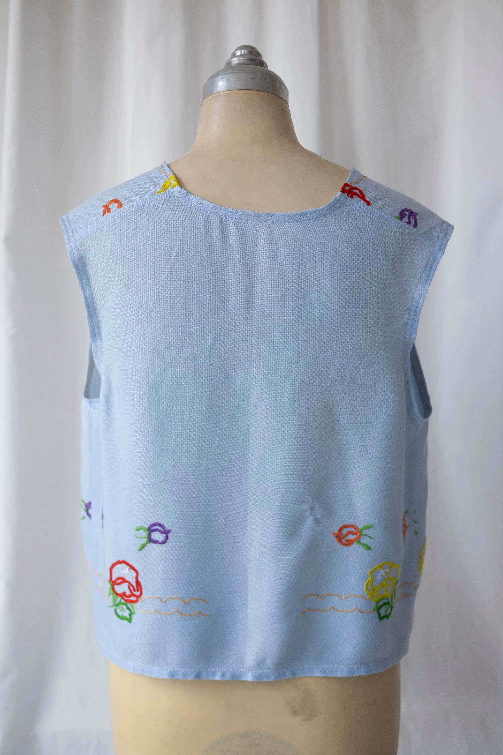 Topaz ~ Reworked Embroidered Blue Waistcoat - S/M