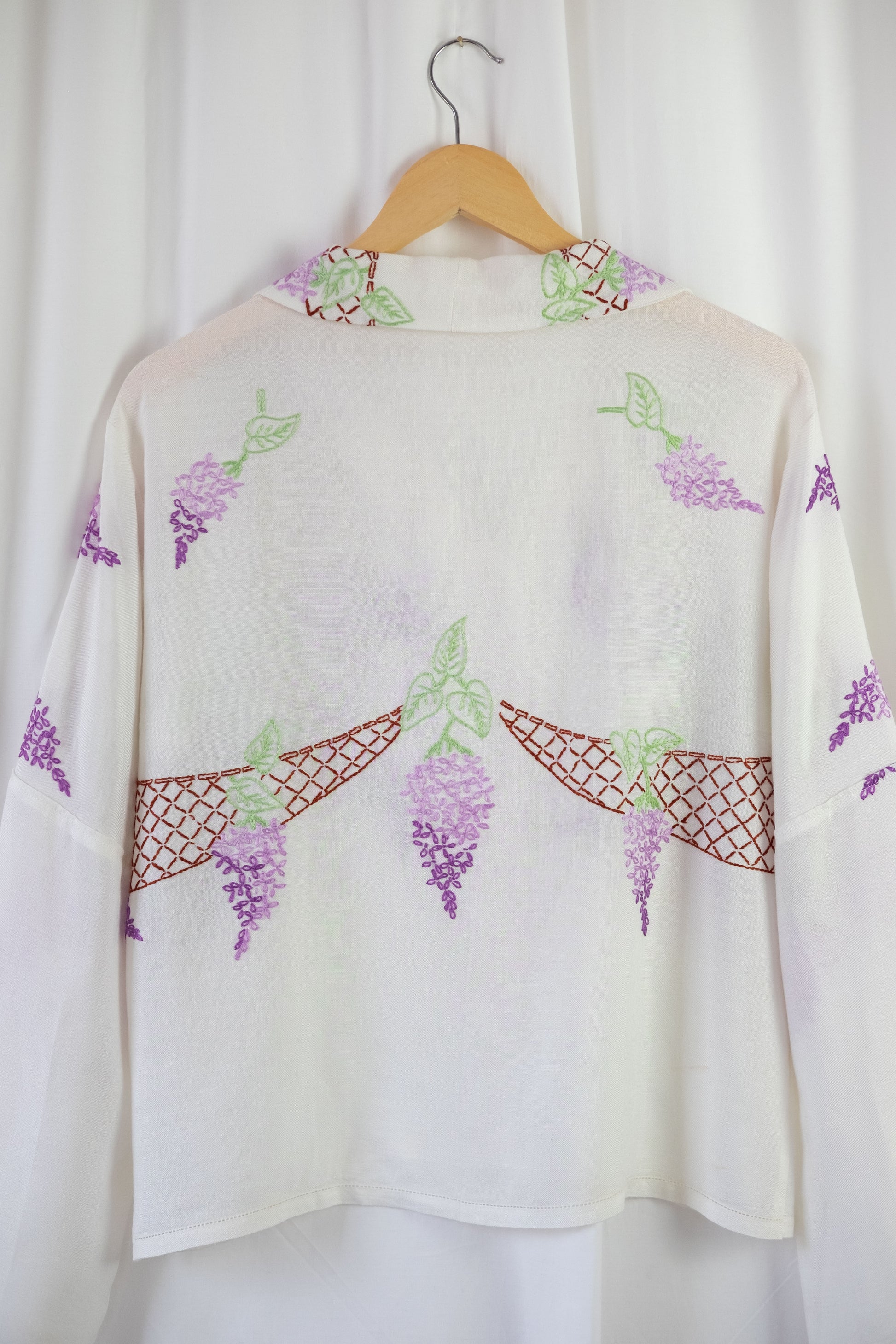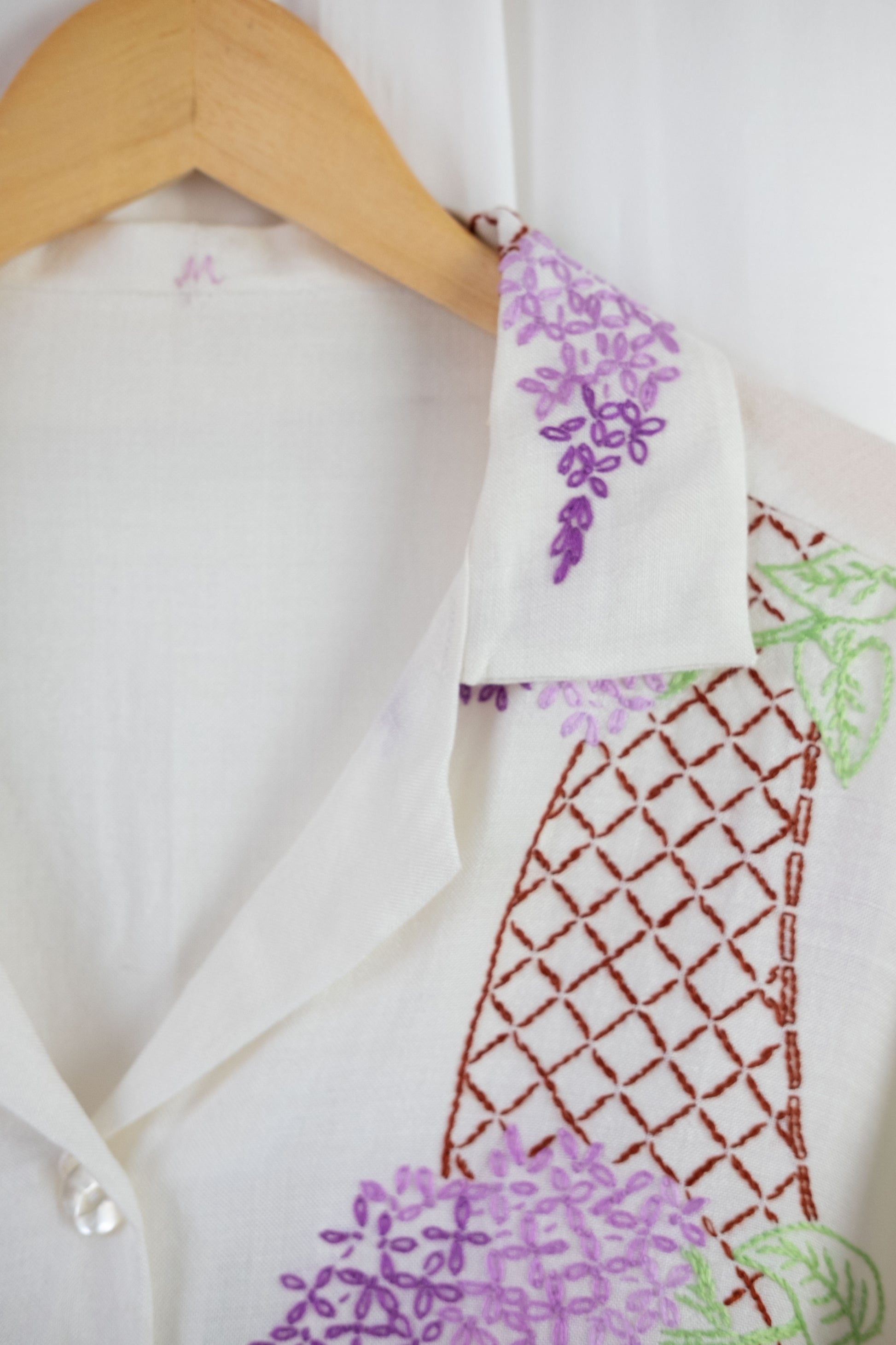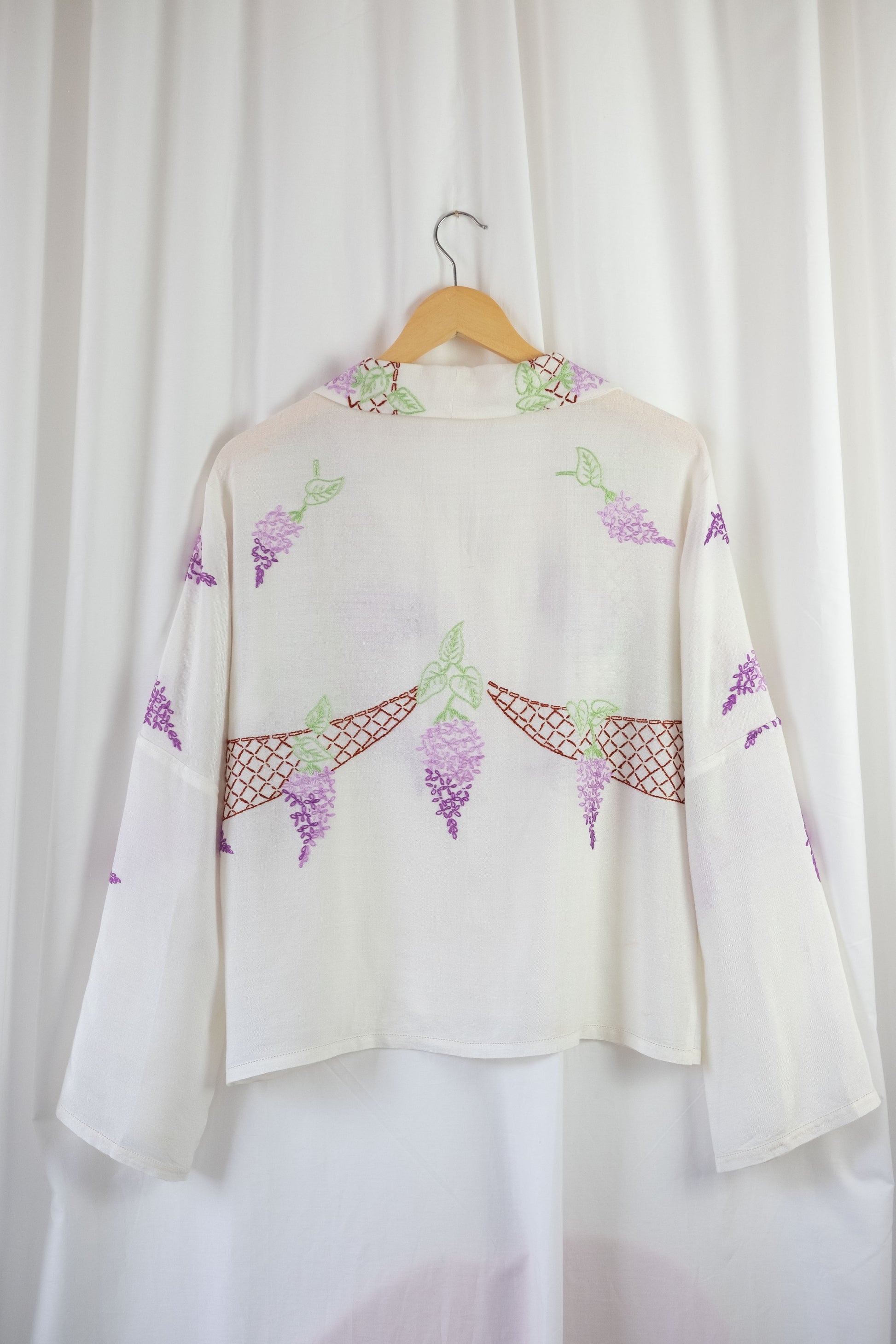 Wisteria ~ Reworked Vintage Linen Embroidered Shirt - M/L
